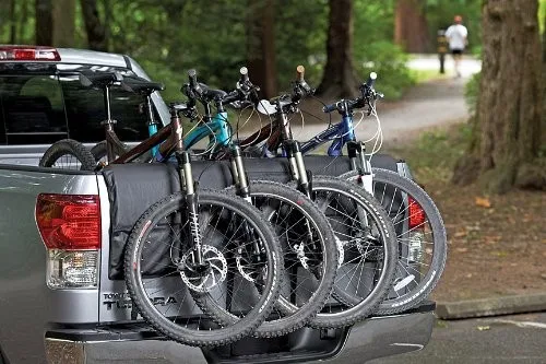 XXF накладка багажника для горных велосипедов с крышкой багажника с надежными ремнями для велосипедной рамы. 52 "широкий-Вмещает 5 велосипедов подходит для большинства средних пикапов. 3/4 "поролоновая прокладка с PTV ловушкой водонепроницаемый снаружи (ультра-мягкая нижняя сторона для защиты краски багажника грузовика) для защиты как ваших велосипедов, так и вашего грузовика при перемещении на вершину вашего любимого тропа Клапан доступа ручки багажника позволяет открыть дверь во время XXF накладка багажника находится на. Клапан доступа ручки багажника позволяет открыть дверь, когда накладка включена.