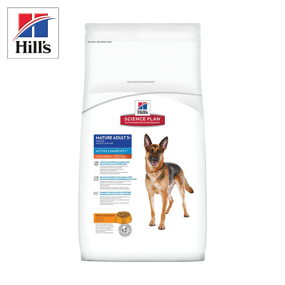 Ключевые преимущества продукта Hill's™ Science Plan™ Dog Mature Adult 5+ Active Longevity™ Large Breed сформулирован для поддержания подвижности, мускулатуры и здоровья внутренних органов у собак крупных пород: