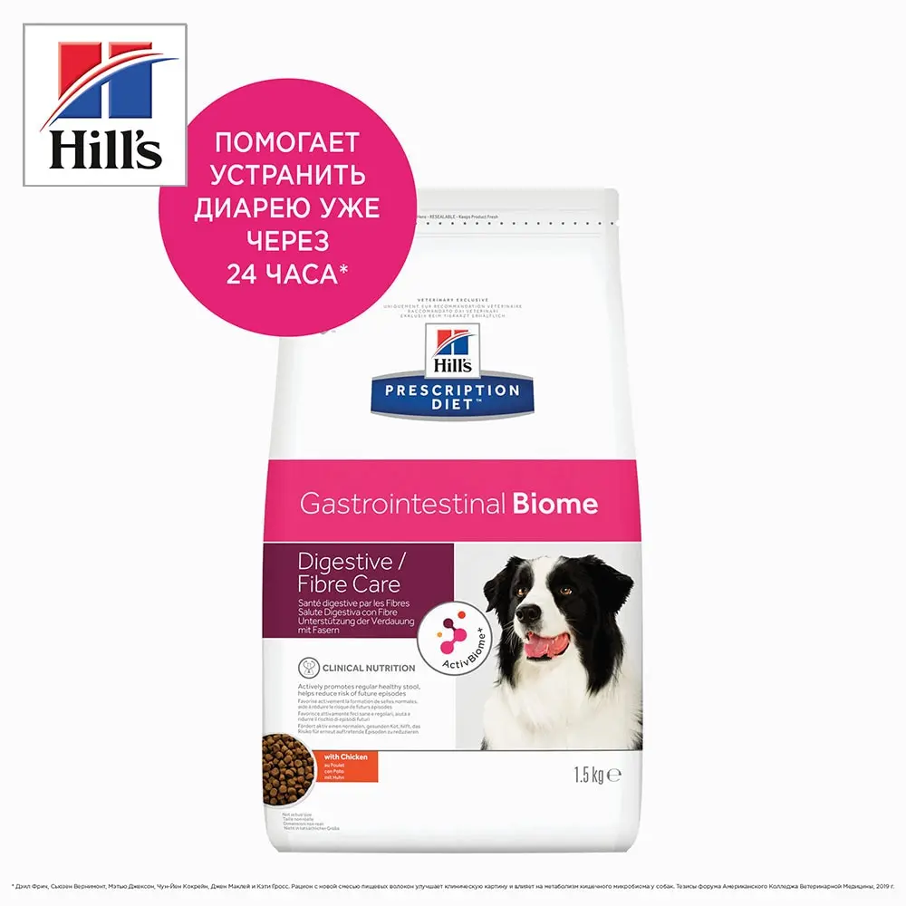 Сухой диетический корм для собак Hill's Prescription Diet Gastrointestinal Biome при расстройствах пищеварения, c курицей, 1,5кг