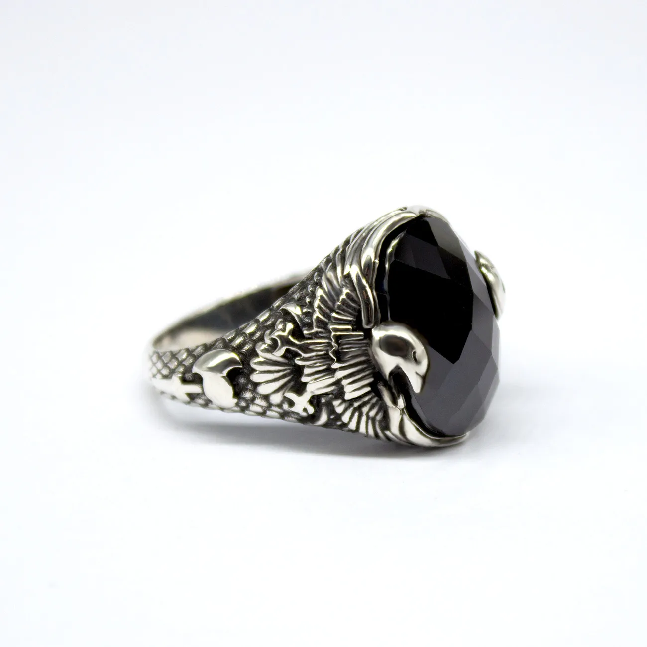 925 Серебряное кольцо для мужчин с камень циркония чорный