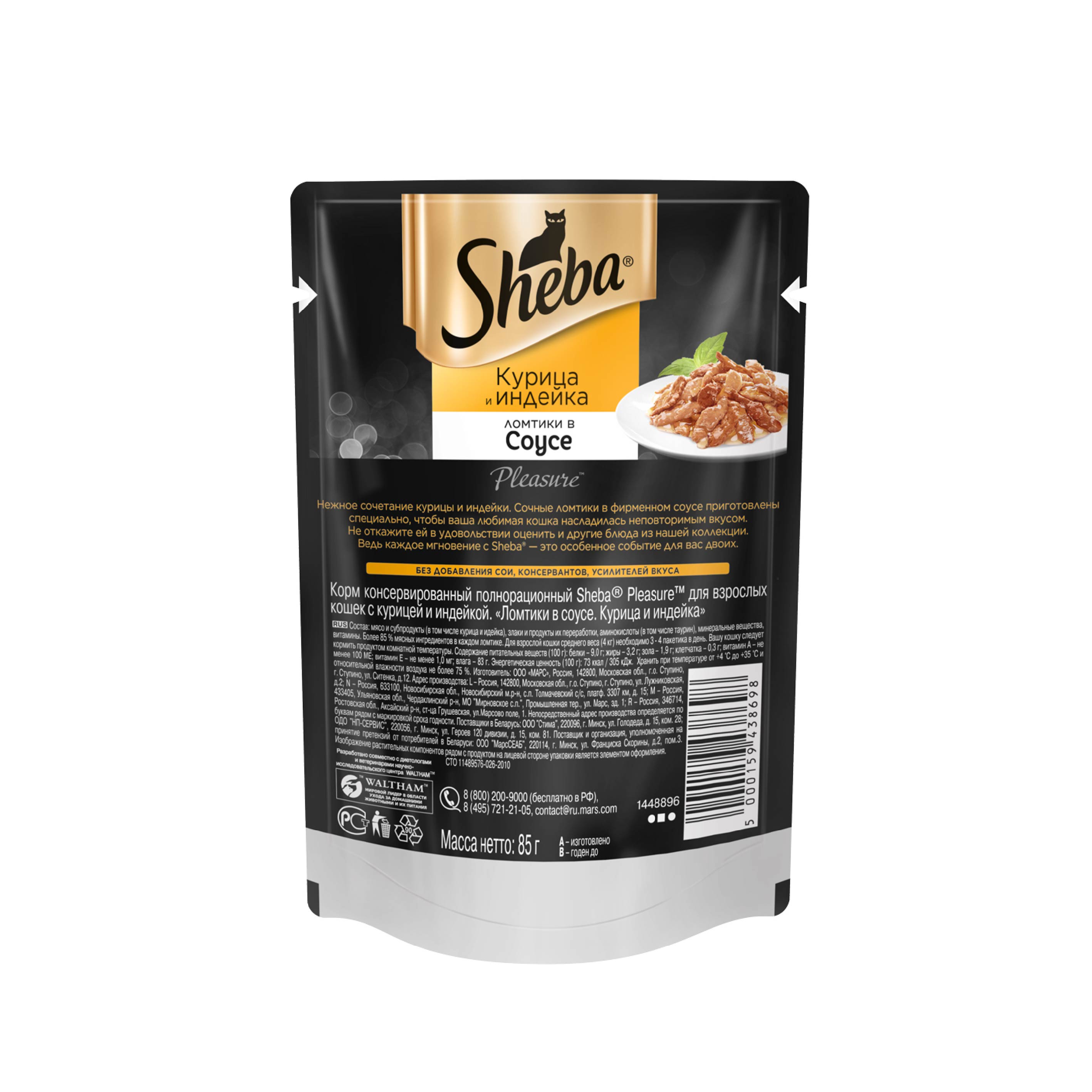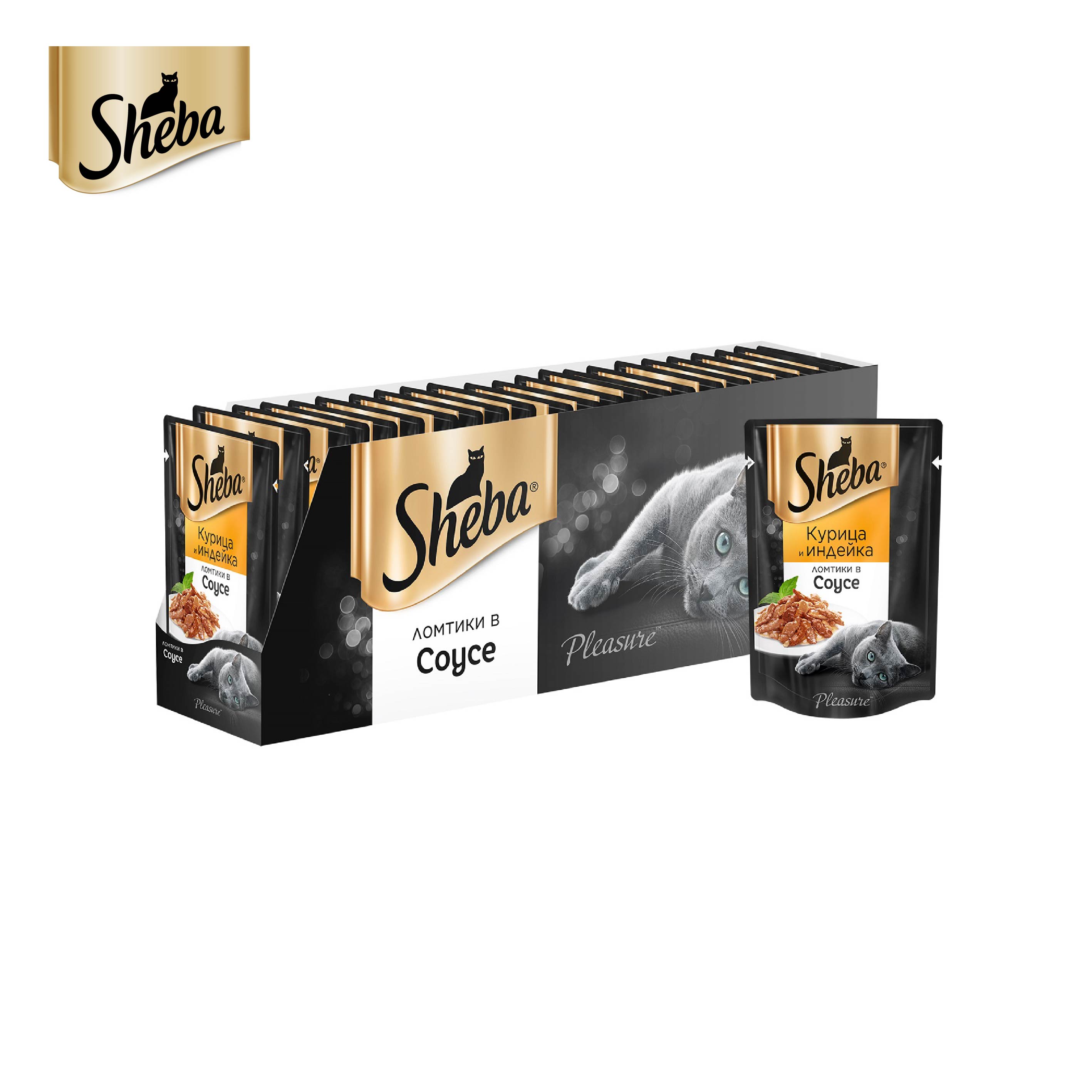 Влажный корм для кошек Sheba Ломтики в соусе курица и индейка, 24 шт по 85 г.