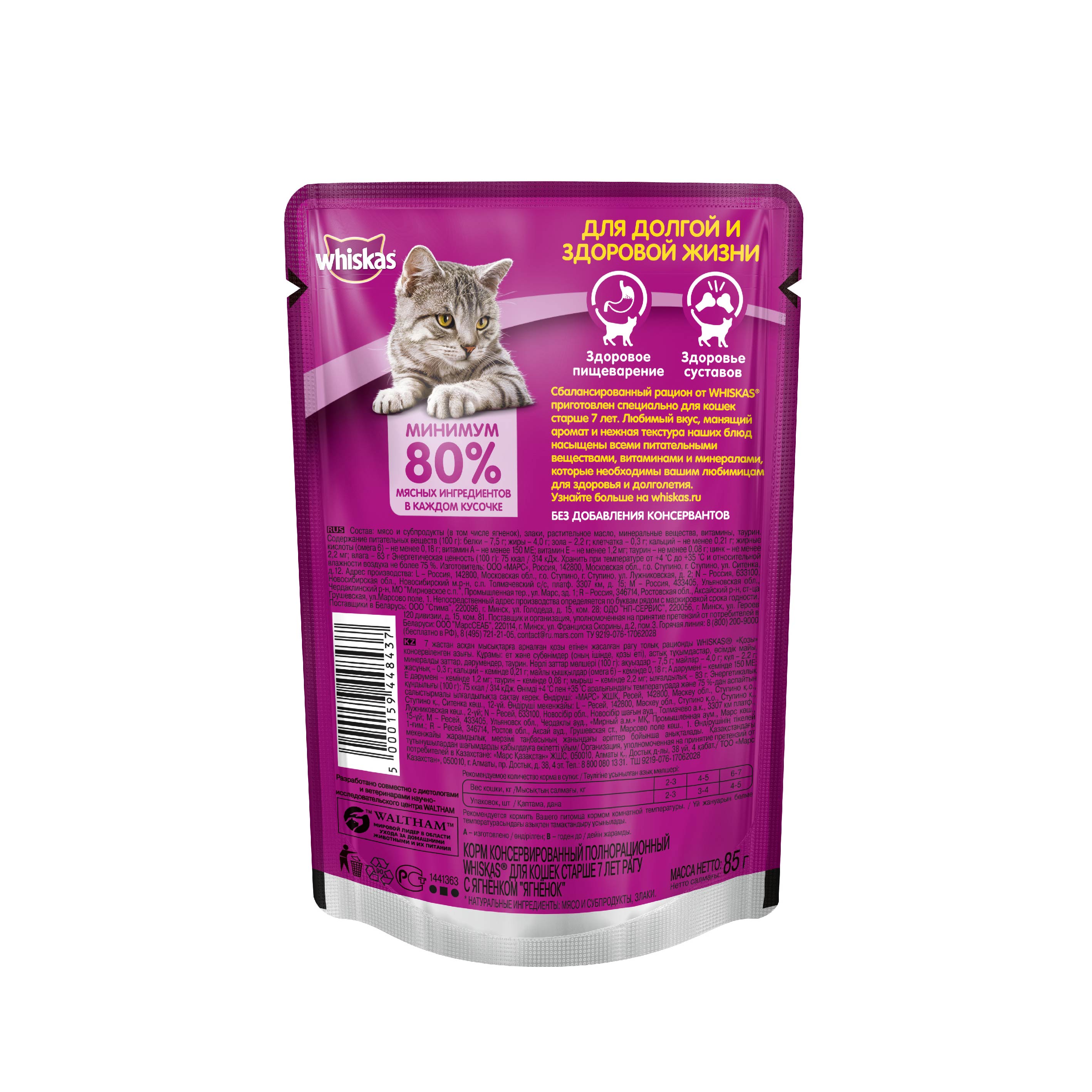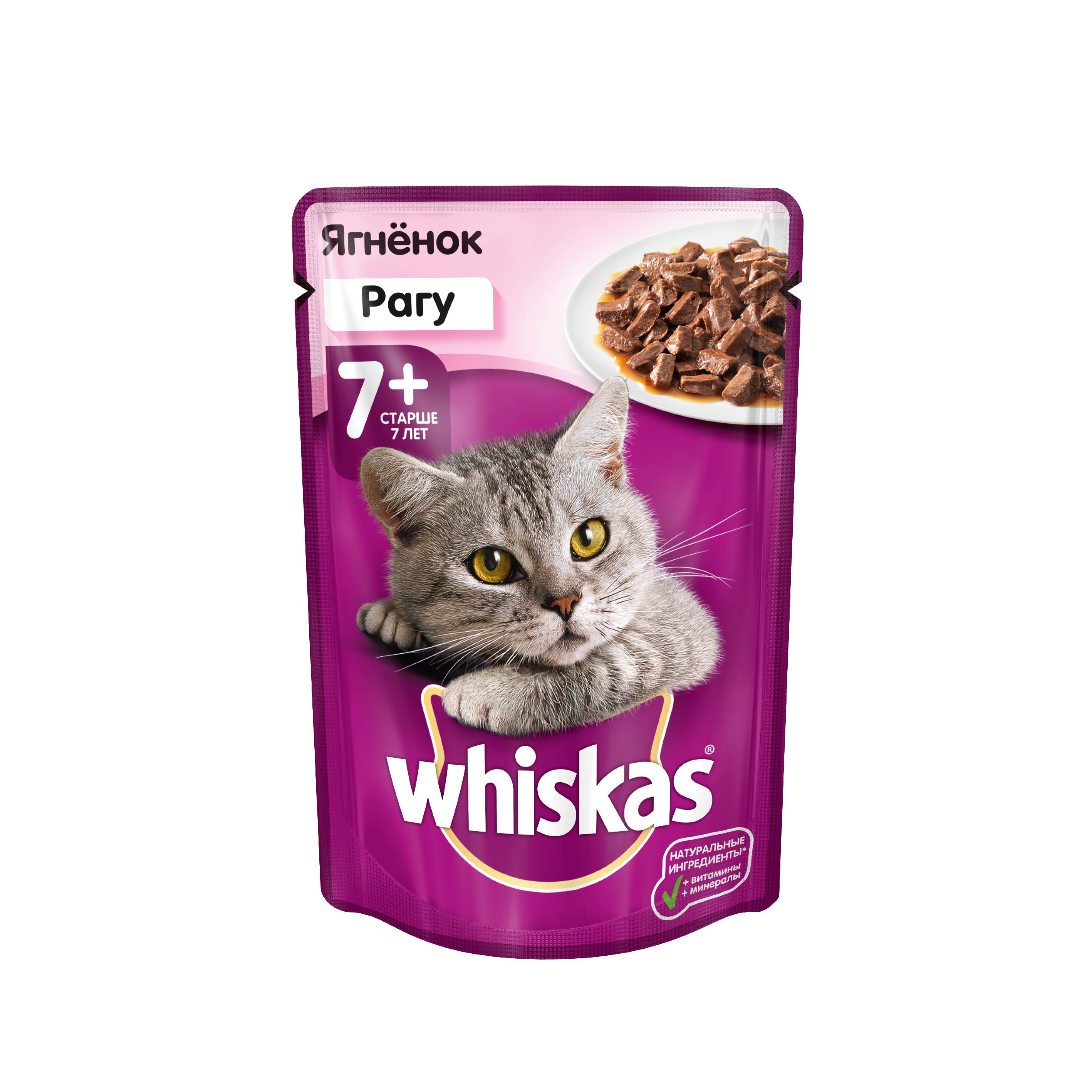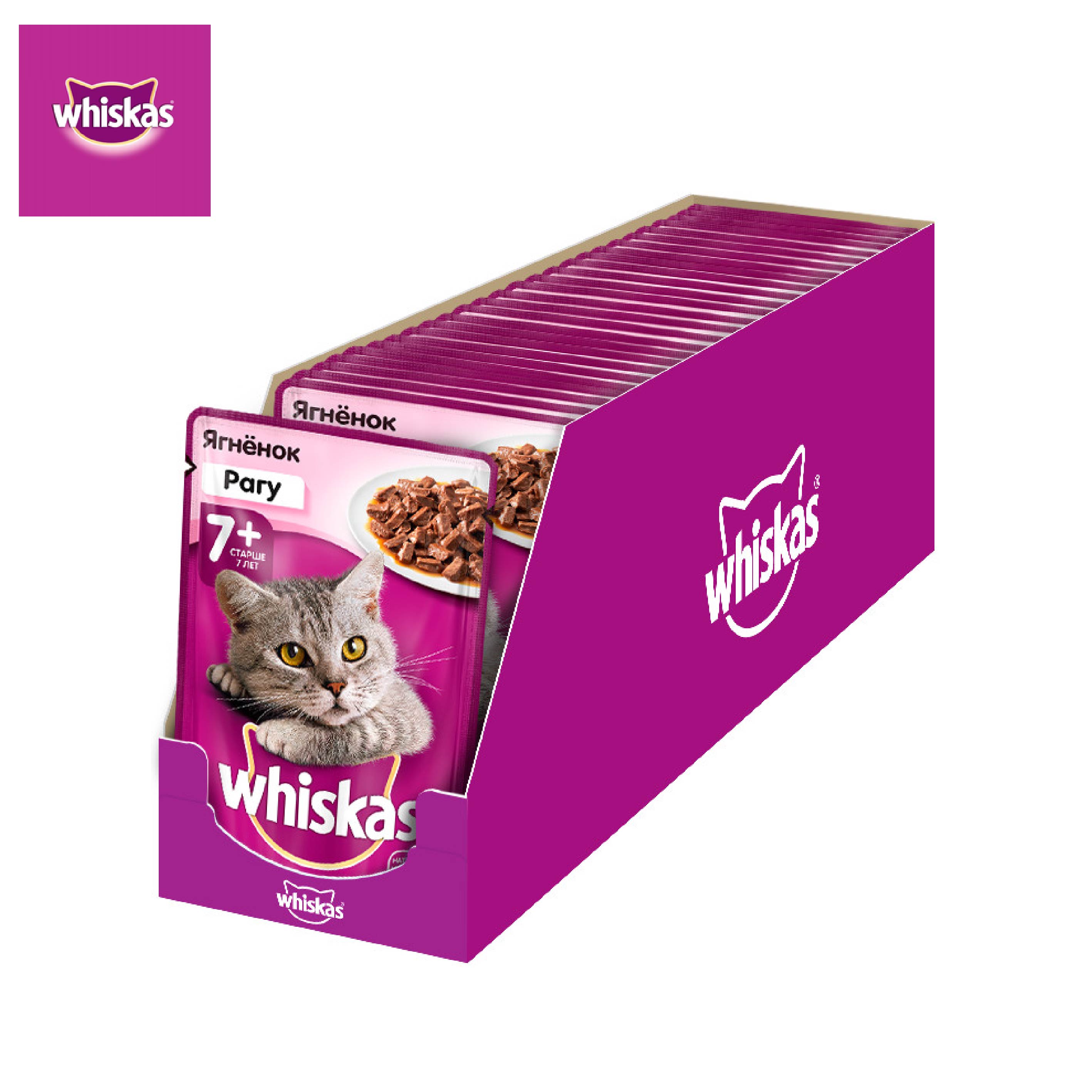 Влажный корм для кошек старше 7 лет Whiskas рагу с ягненком, 28 шт по 85г