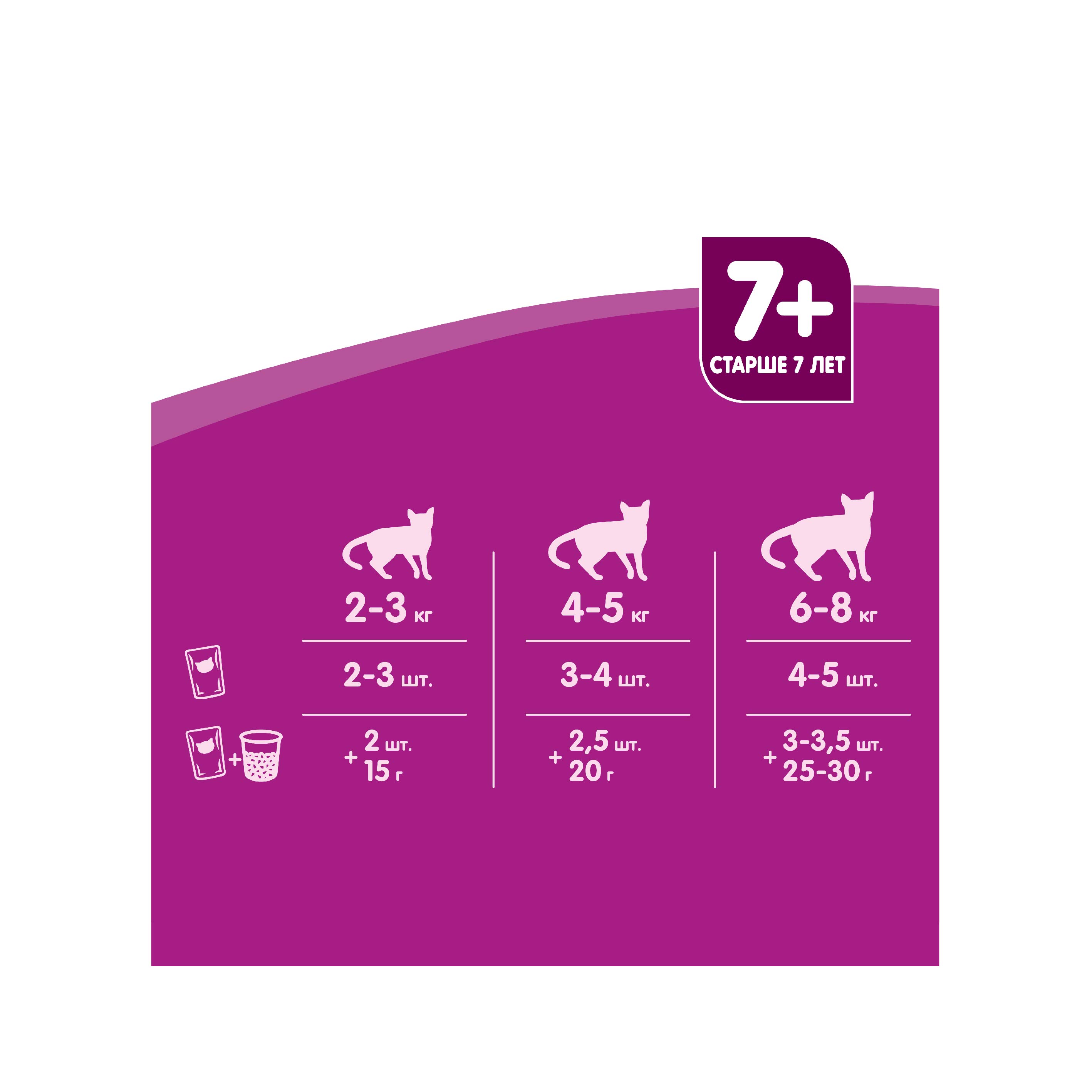 Сбалансированный рацион от Whiskas приготовлен специально для кошек старше 7 лет.