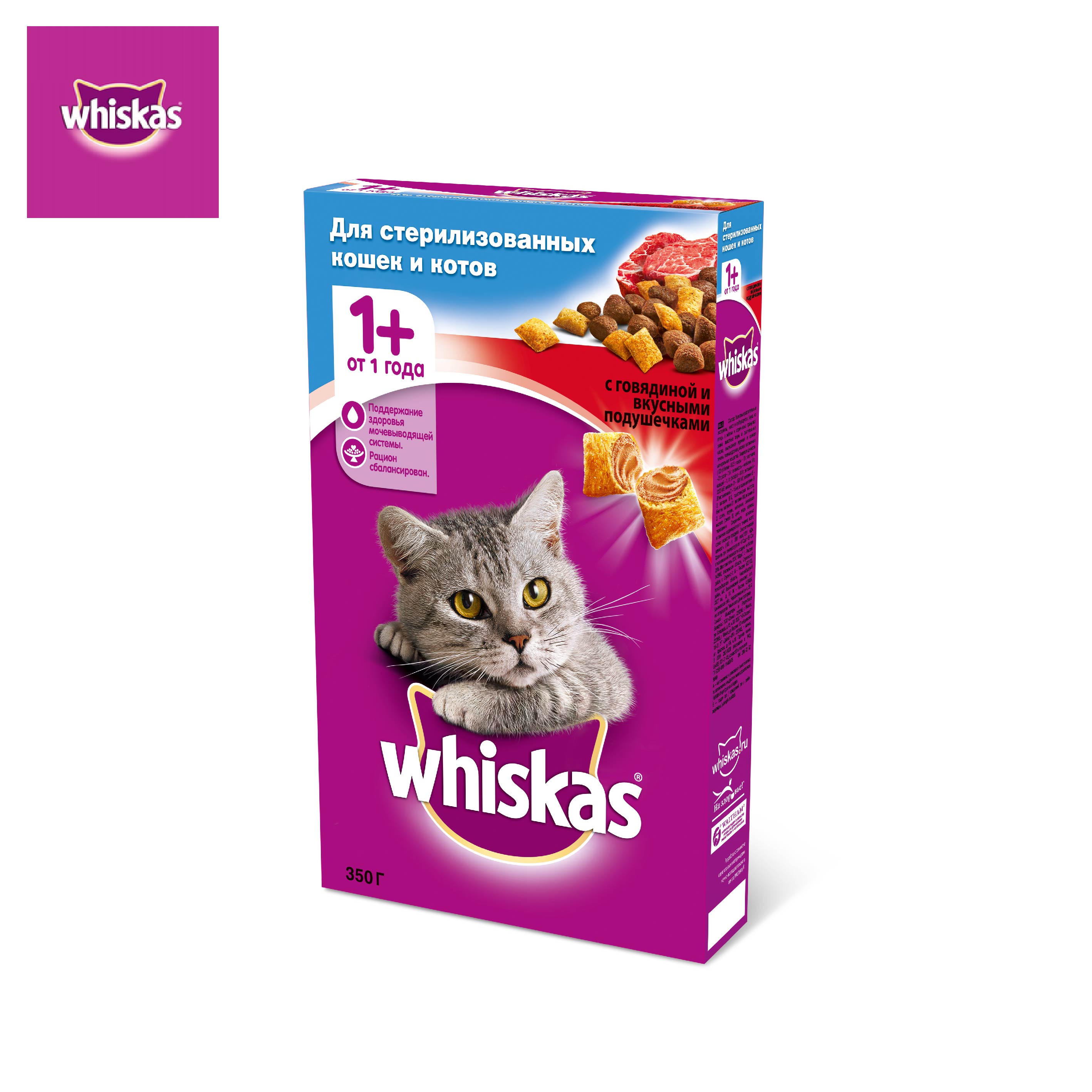 Хрустящие подушечки с нежным паштетом внутри обязательно придутся по вкусу Вашей кошке. Кроме того, Whiskas® содержит все необходимое, чтобы еда Вашей стерилизованной любимицы была не только вкусной, но и полезной.