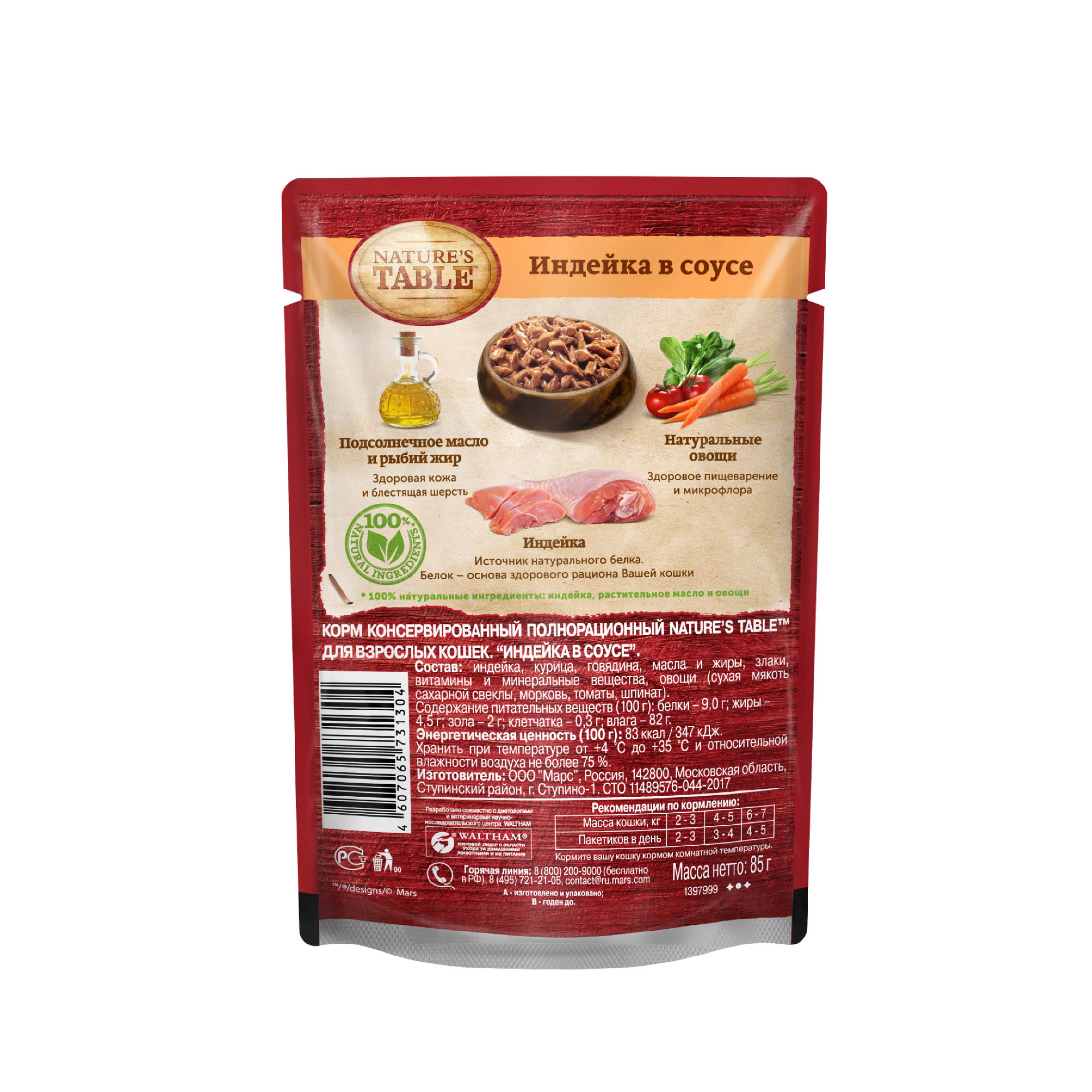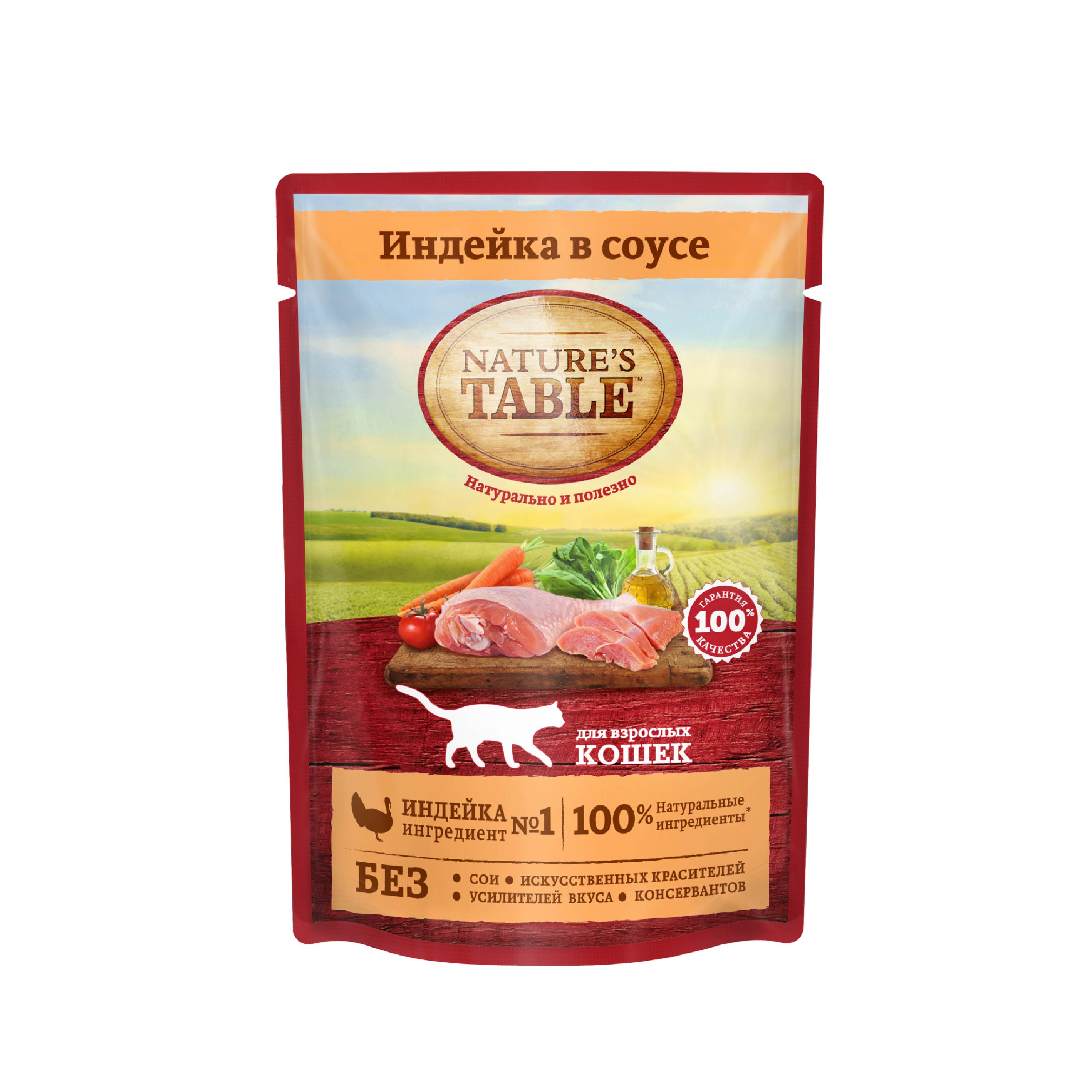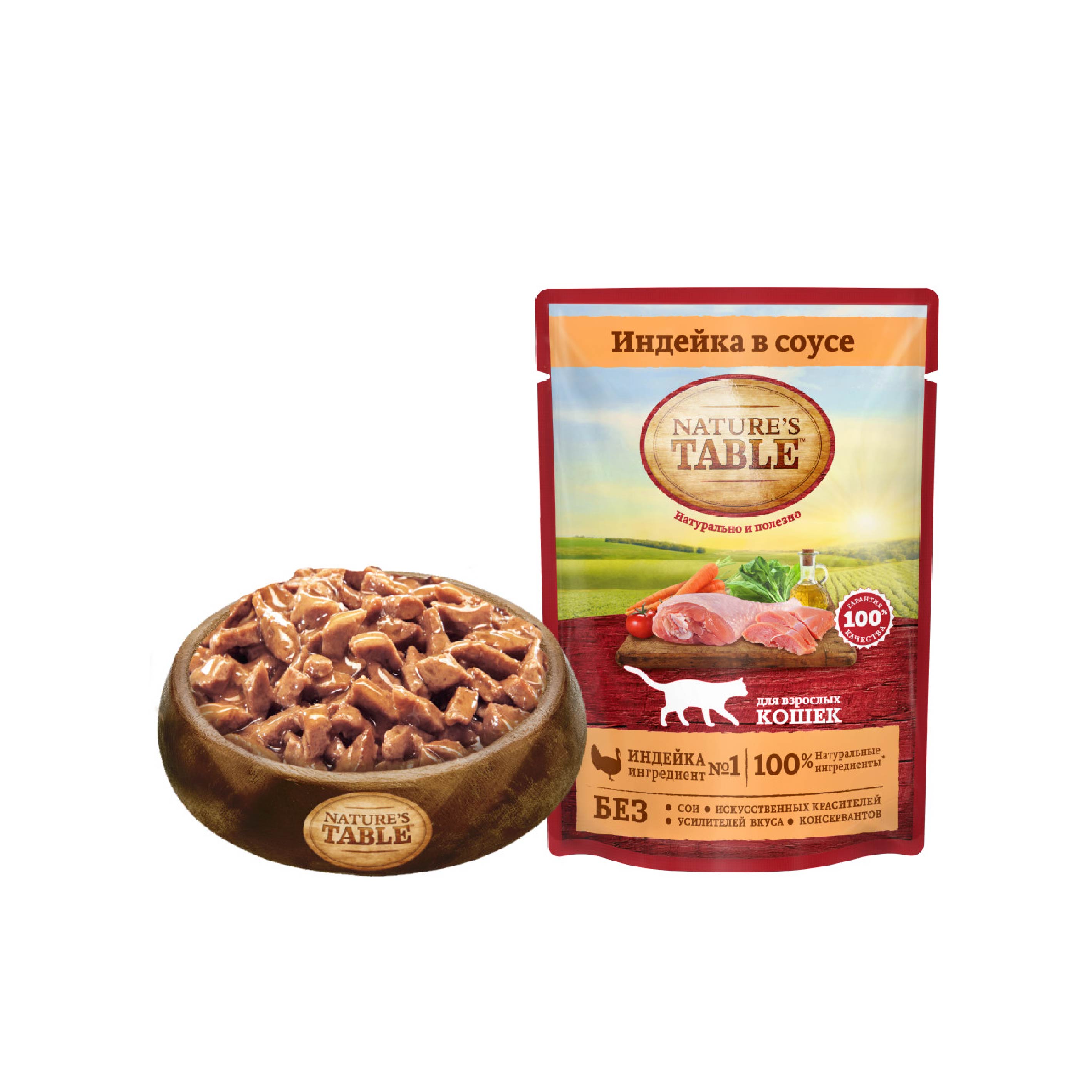 Рацион Nature`s Table Индейка в соусе содержит на 100% натуральные ингредиенты самого высокого качества, получаемые от проверенных поставщиков: