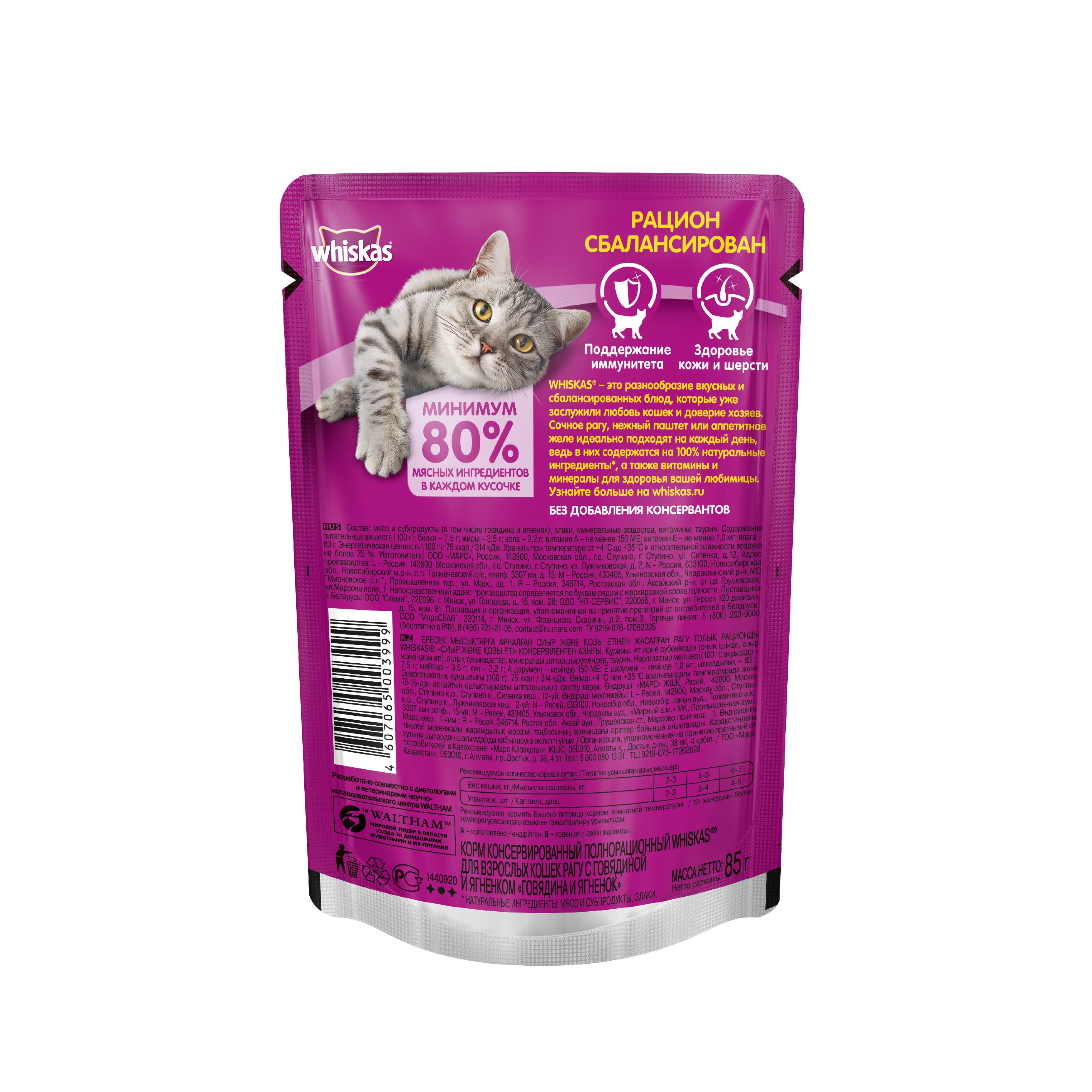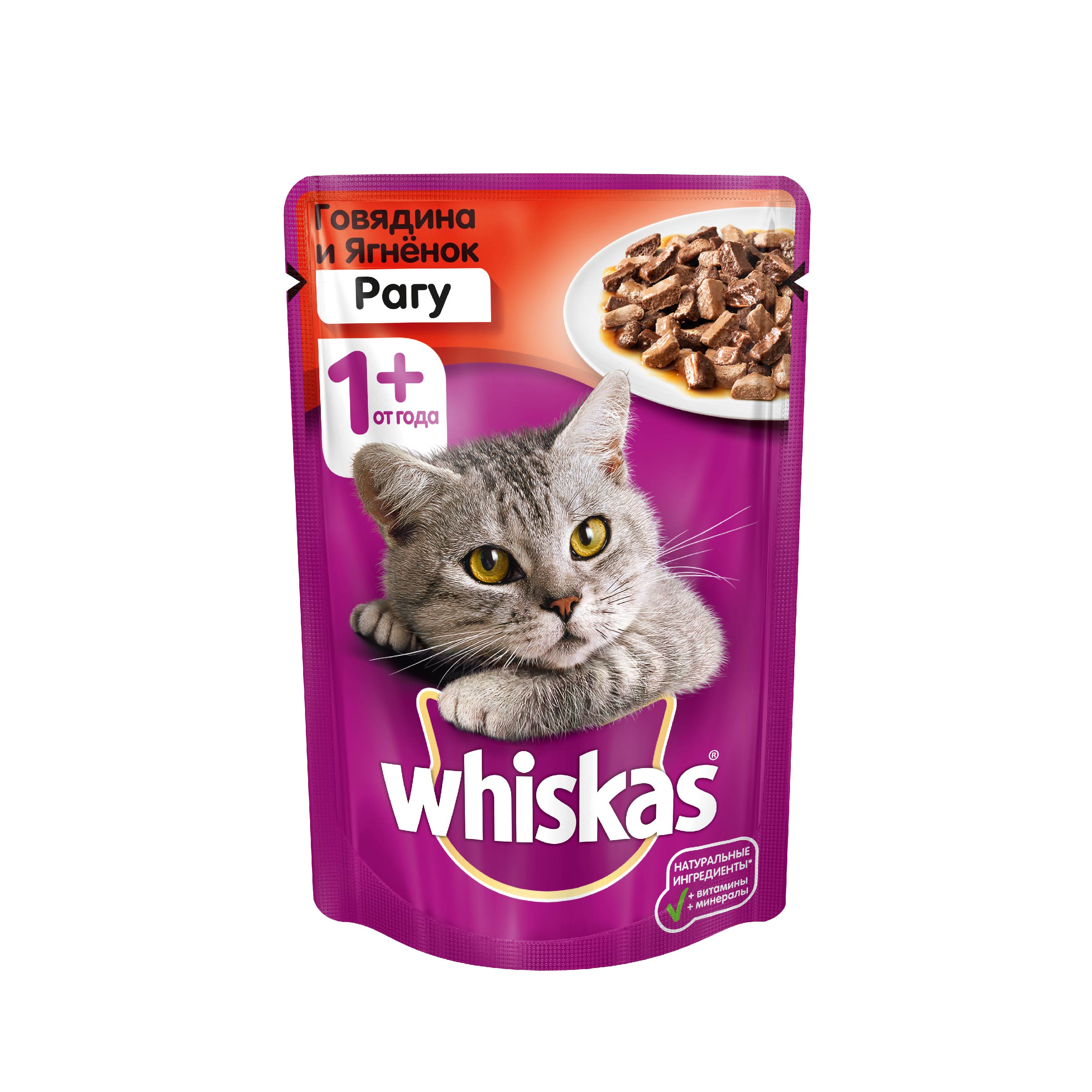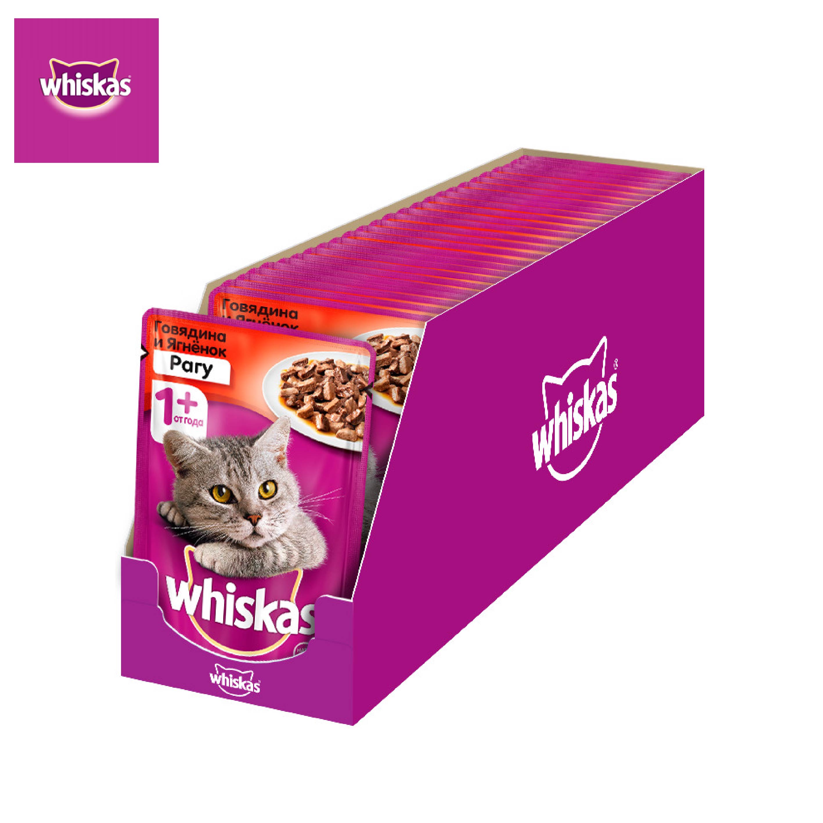 Влажный корм для кошек Whiskas рагу с говядиной и ягненком, 28 шт по 85г
