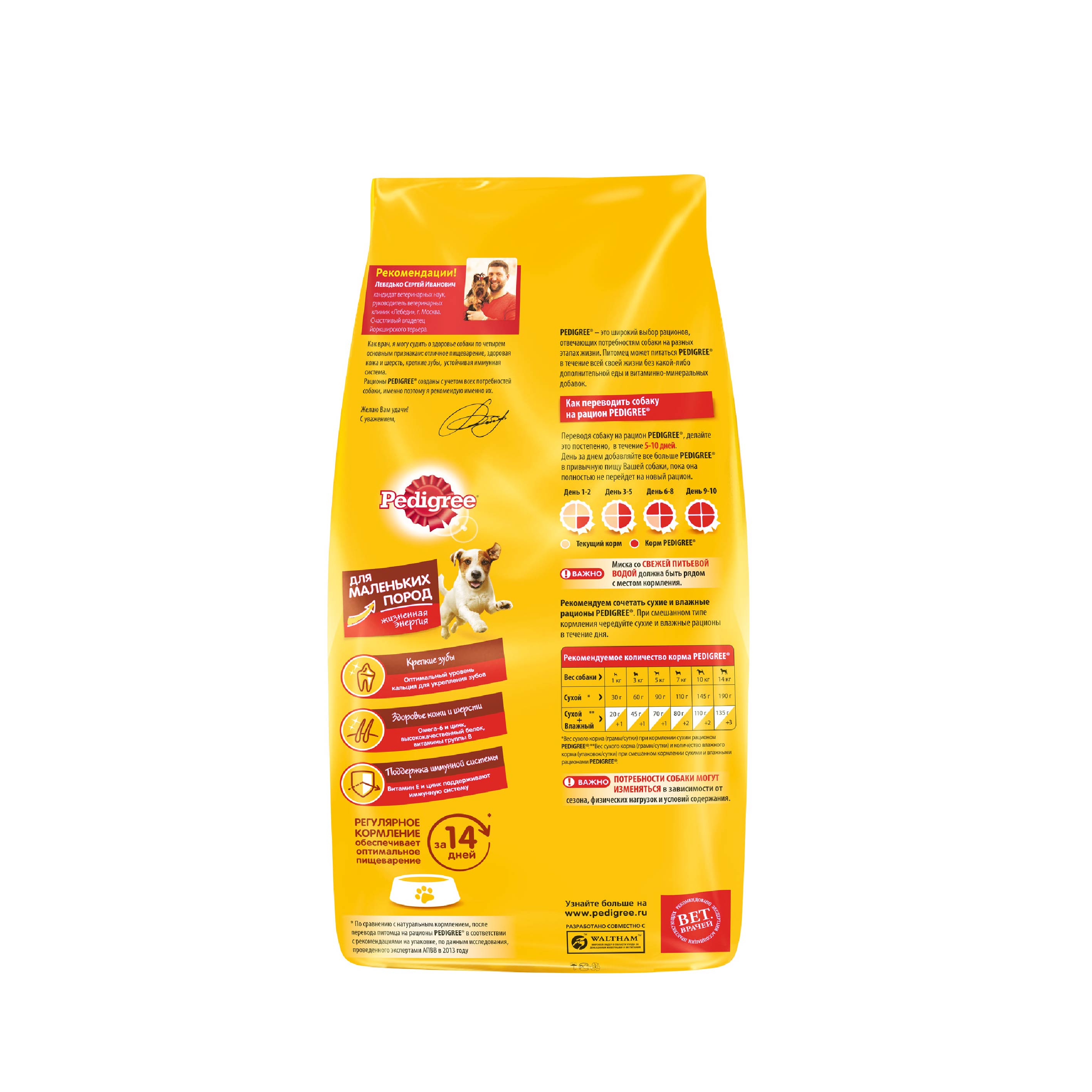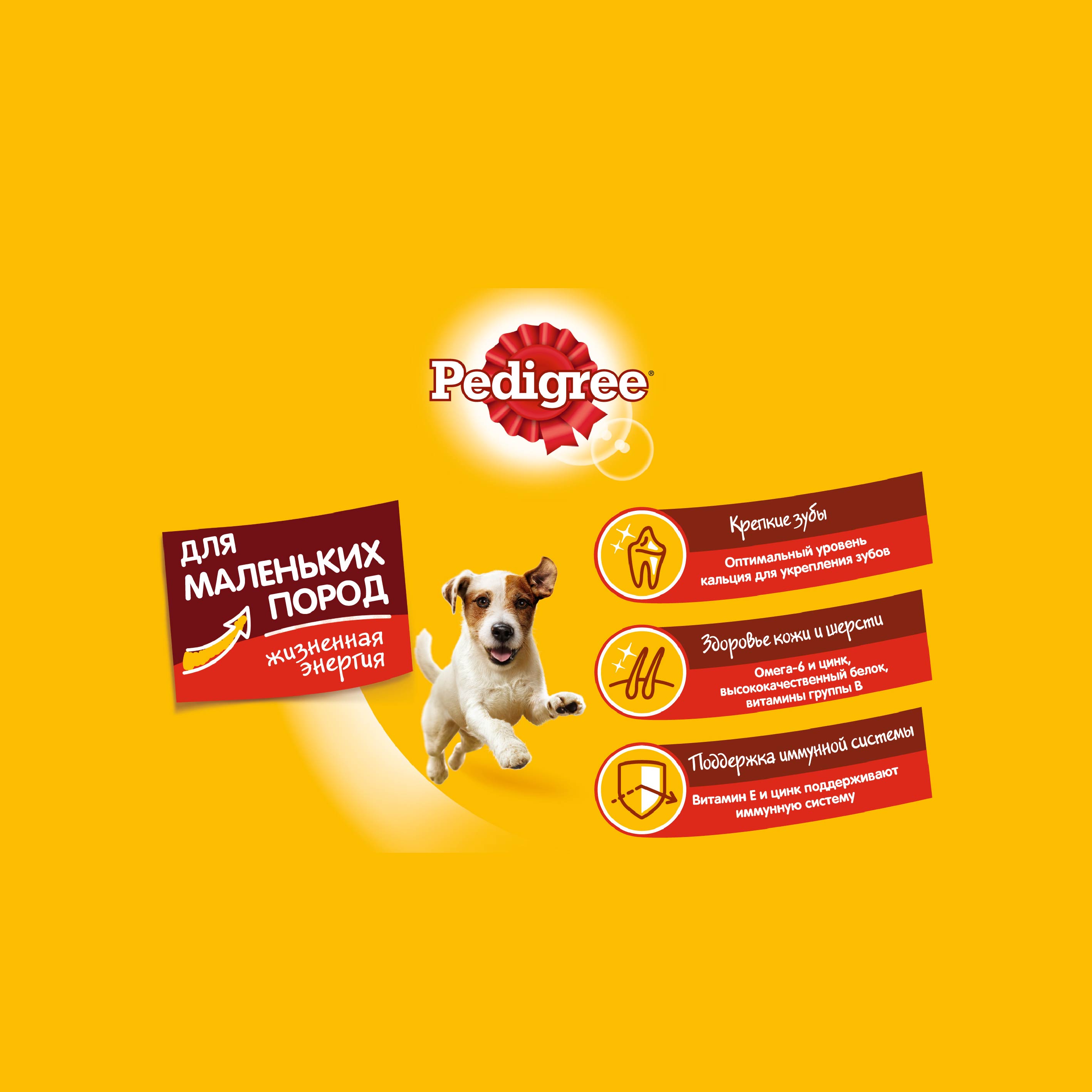 Pedigree® рекомендует сочетать разные форматы корма в рационе взрослых собак маленьких пород.