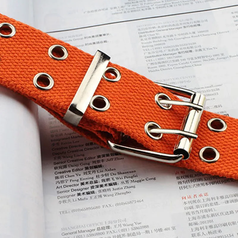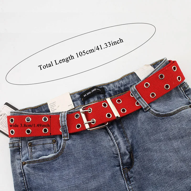 Fashion Canvas Belt Casual Double Hollow Out Holes Buckle Adjustable Waistband