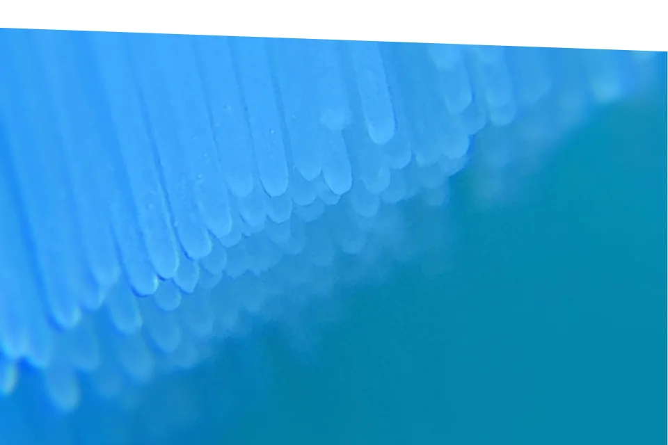 Кончики щетинок Mi проходят процесс шлифовки и полировки, чтобы создать форму, похожую на полукруг. На кончиках неокрашенных щетинок показан зазубренный рисунок, Щетинки Mi могут обеспечить лучшую защиту для дёсен и не повредить вашу зубную эмаль.