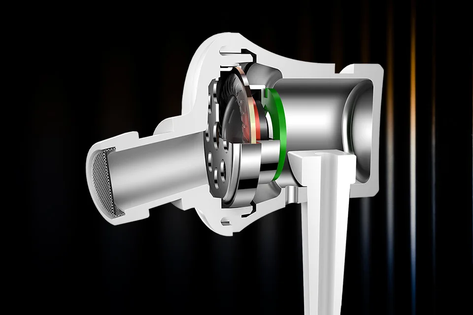 Уникальная система сбалансированного демпфирования третьего поколения способствует более качественному разделению звукового и воздушного потоков. Воздушный поток отделяется в передней части камеры, что позволяет сделать звук чище и мягче.