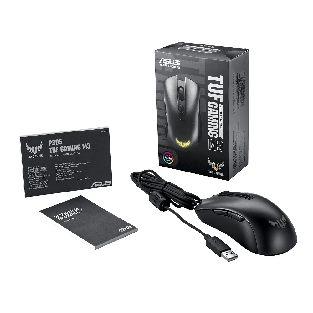 Мышь ASUS TUF Gaming M3 90MP01J0-B0UA00 оптическая, подсветка RGB, 7000 dpi, USB, цвет: черный