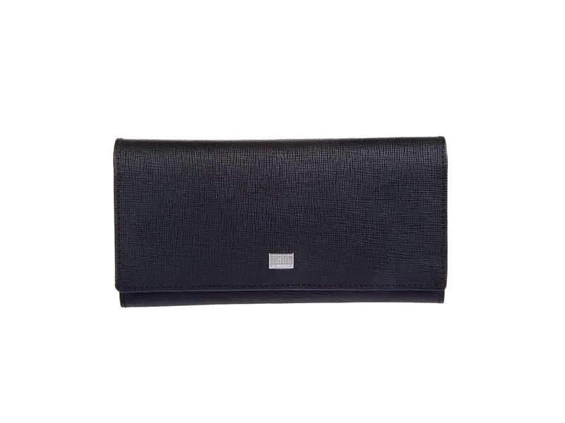 Внутри два отделения для купюр, разделённые карманом для монет на молнии, два кармана для документов, сетчатый карман и девятнадцать кармашков для пластиковых карт. Закрывается клапаном на кнопке. С внешней стороны на задней стенке карман на молнии.