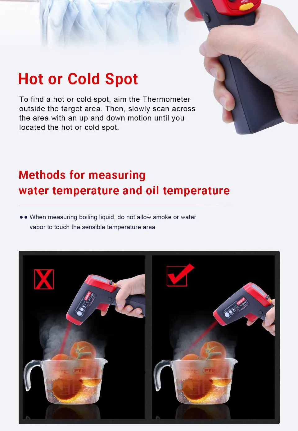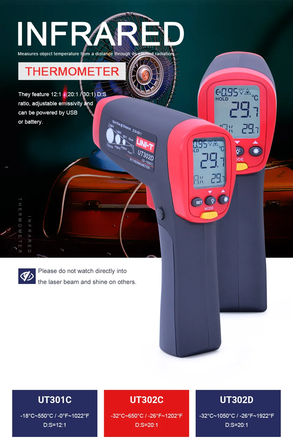 UNI-T UT303A UT303C UT303D Бесконтактный цифровой термометр ИК инфракрасный лазерный температурный пистолет тестер с ЖК-дисплеем
