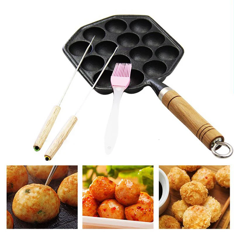 14 отверстий Профессиональный осьминог мяч Meatball производитель чугун без покрытия Takoyaki гриль пластина антипригарная Chibi Maruko плесень Пан формы для выпечки
