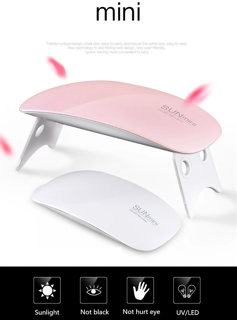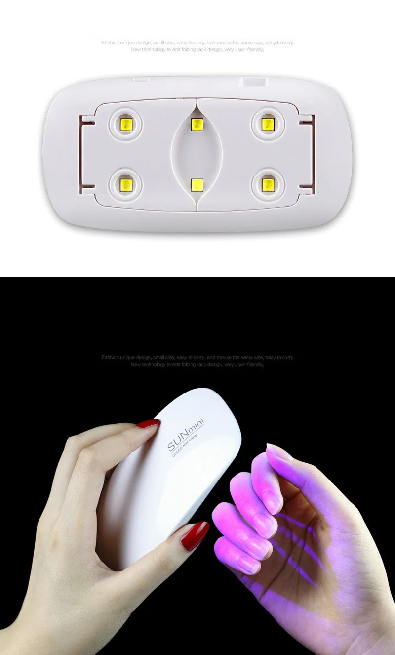 6 шт. 365nm + 405nm двойной свет для отверждения УФ светодиодных гелей Складная коробка для хранения, с использованием удобнее 2 таймера: 45С, а-ля 60ые USB кабель, Выходная мощность: 5В/1A 2 цвета: белый, розовый