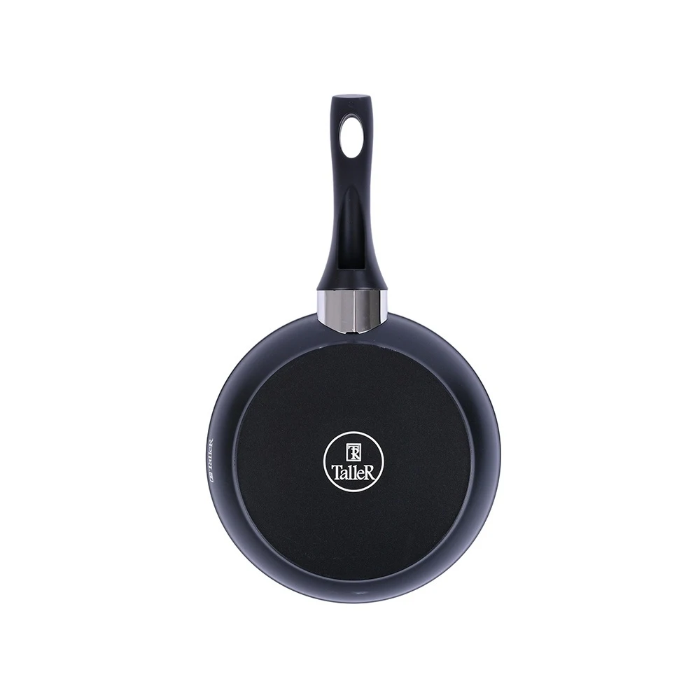 Модель TalleR TR-4194. Тип - классическая. Максимальный размер - 26 см. Материал сковороды - кованный алюминий. Материал ручек - бакелит с soft-touch. Двухслойное антипригарное покрытие Whitford Xylan Plus. Утолщенное дно 3.2 мм обеспечивает быстрый и равномерный нагрев. Подходит для всех типов плит, не подлежит эксплуатации в духовом шкафу, можно мыть в посудомоечной машине.