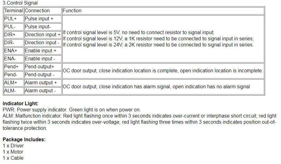 Описание: HSS86 представляет собой двухфазный гибридный шаговый двигатель сервопривод, новая 32-битная технология управления и векторным управлением технологии, которая может предотвратить потерю механизм синхронизации и обеспечивает высокую точность. Затухание высокоскоростного крутящего момента намного ниже, чем у традиционного драйвера открытого цикла, который может значительно повысить высокую скорость работы и крутящий момент шагового двигателя. Технология контроля тока на основе нагрузки может эффективно снизить повышение температуры двигателя и продлить срок службы двигателя. Встроенный сигнал на выходе и сигнал тревоги удобен для контроля и управления ПК. Функция аварийной сигнализации обеспечивает безопасную работу механического оборудования. Драйвер является отличной заменой традиционного шагового водителя открытого цикла и может заменить часть традиционной сервосистемы переменного тока. Особенности: Драйвер используются передовые 32-битный специальный чип управления двигателем и вектор замкнутому циклу технологии. Шаговая замкнутая контурная система, без потери синхронизации движения. Улучшите Выходной крутящий момент и скорость двигателя. Ток регулируется в зависимости от нагрузки, снижая температуру двигателя. Подходит для всех видов оборудования условий нагрузки (включая низкую жесткость ременного колеса и шкива) без регулировки коэффициента усиления. Двигатель работает плавно, мягко вибрирует и улучшает ускорение и замедление динамических характеристик. Нулевая скорость статическая способность без вибрации после завершения позиционирования. Частота импульсного отклика до 200 кГц. Максимум 51200 шагов/вращения, 16 видов дополнительного сегмента. Он поддерживает защиту от перегрузки по току, защиту от перенапряжения, защиту от смещения. Технические характеристики: Напряжение: AC20V ~ 80V Пиковый выходной ток: 8.0A (изменения тока вместе с нагрузкой) Логический входной ток: 7 ~ 20 мА Частота импульса: 0 ~ 200 кГц Кодер линии: 1000 Сопротивление изоляции: >= 500 м; Мощность двигателя: 200 Вт Номинальная скорость двигателя: 0 ~ 3000 об/мин Крутящий момент двигателя: 8N.m