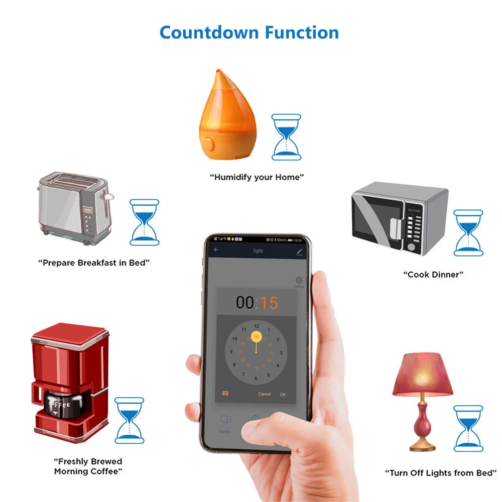 1. Входное напряжение: 90-250 В переменного тока 60 Гц/50 Гц. 2, максимальный ток: 10A. 3, беспроводной стандарт: IEEE 802 .11 b/g/n. 4. Рабочая частота RF: 433,92 МГц. 5. Дистанционное включение/выключение: включение/выключение электрических устройств из любого места. 6. Поддержка приложений: Бесплатное мобильное приложение для iOS и Android «Умная жизнь» или Tuya. 7. Время: Установите таймеры запланированного/обратного отсчета/петли для включения/выключения в указанное время. 8. Управление разделением: Управляйте своим умным домом вместе с семьей. 9. Голосовое управление: идеально работает с Amazon Alexa,Google Home,IFTTT. 10. Материал корпуса: огнестойкий АБС-пластик. 11, Размер (Д/Ш/В): 82 мм x 43 мм x 26 мм. 12, Вес: 58,4 г/2,06 унций.