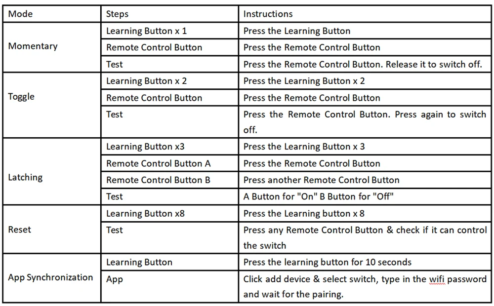 Рабочая частота: 433,92 МГц. Батарея: CR 2016 литиевая батарея x 2 (батарея входит в комплект). Рабочее напряжение: 3 в. Рабочий ток: 12 мА. Мощность передачи: 10 мВт. Скорость передачи: 50 ~ 60 кГц. Режим модуляции: ASK. Кодирование: код обучения EV1527. Радиус передачи: 20 - 50 м (открытая площадь). Цвет: черный. Размеры изделия: 6,2*2,9*1,2 см/2,44*1,14*0,47 в такой стране, как. Вес продукта: 30 г/1,05 унций.