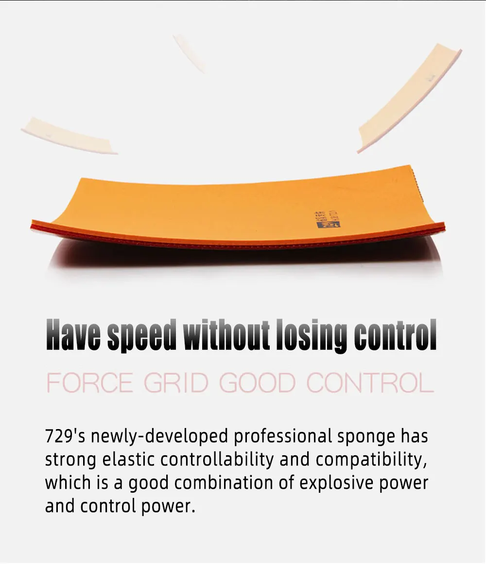 Иметь скорость без потери контроля Новая Профессиональная губка 729 обладает сильной упругой управляемостью и совместимостью, что является хорошим сочетанием взрывной мощности и мощности управления.