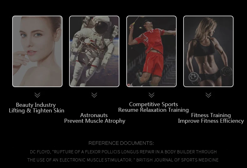 NMES изначально используется для предотвращения атрофии мышц космонавтов в невесомом состоянии, широко используется мировыми профессиональными спортсменами, косметической индустрией в качестве основного способа тренировки красоты и фитнеса