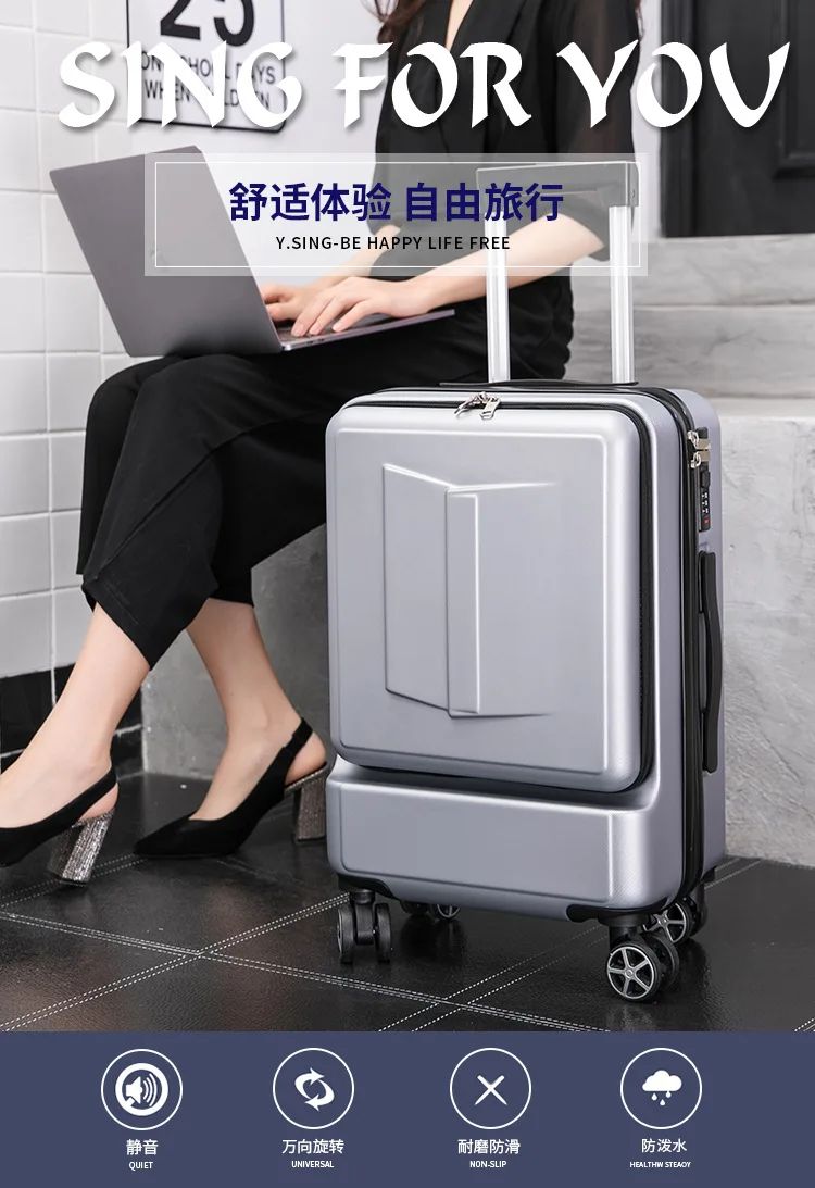 Колесо:360 ° бесшумный ролик Блокировка пароля:Трехзначный комбинированный замок Стержень для галстука: Стержень из толстого сплава Ручка: Удобная ручка Функция: Водонепроницаемость, износостойкость, ударопрочность, устойчивость к давлению Размер багажаНоутбук может быть помещен на переднюю и водную чашку и зонтик может быть помещен на заднюю часть
