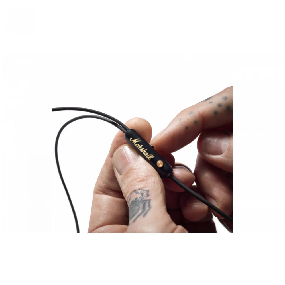 Высочайший класс наушников Marshall Mode EQ виден во всем – устройство заключено в оригинальный корпус, детали отделки с позполотой. Форма этих наушников обеспечивает оптимальное расположение внутри ушной раковины, наушники плотно держаться и не выпадают при активном движении. Благодаря специальной обработке материала кабеля, провод от наушников не спутывается.