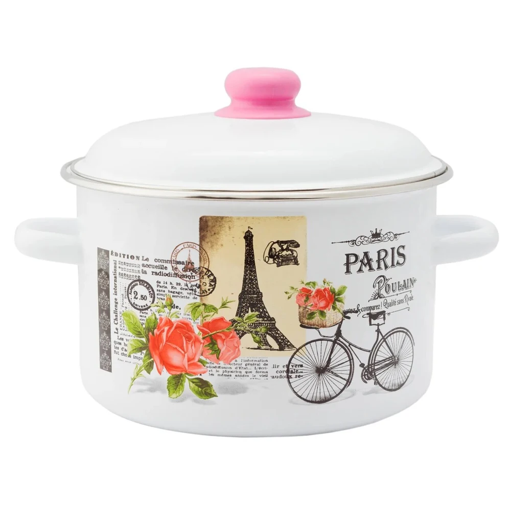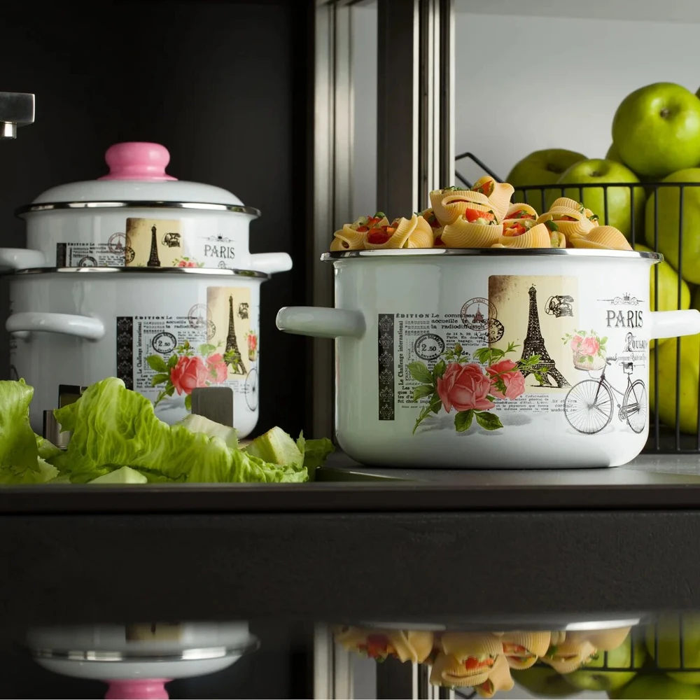 Представляем стальную эмалированную посуду ТМ Appetite серии Париж. Кастрюля производится из экологичного природного сырья и соответствует стандартам ГОСТ, что гарантирует отсутствие химических реакций и сохраняет вкус пищи при приготовлении. Стекловидное эмалированное покрытие надежно предохраняет металл основания от контакта с продуктами. Кастрюля отличается высоким качеством. Изделие подходит для всех видов плит: газовых, электрических и индукционных. Гладкая не пористая поверхность посуды обеспечивает простой и легкий уход. Уникальный дизайн посуды серии Bird украсит любую кухню и создаст атмосферу домашнего уюта.