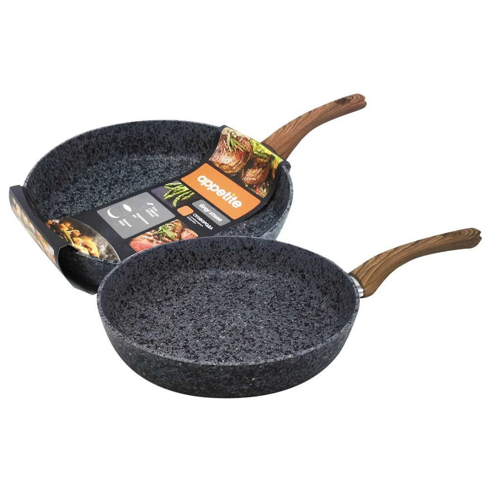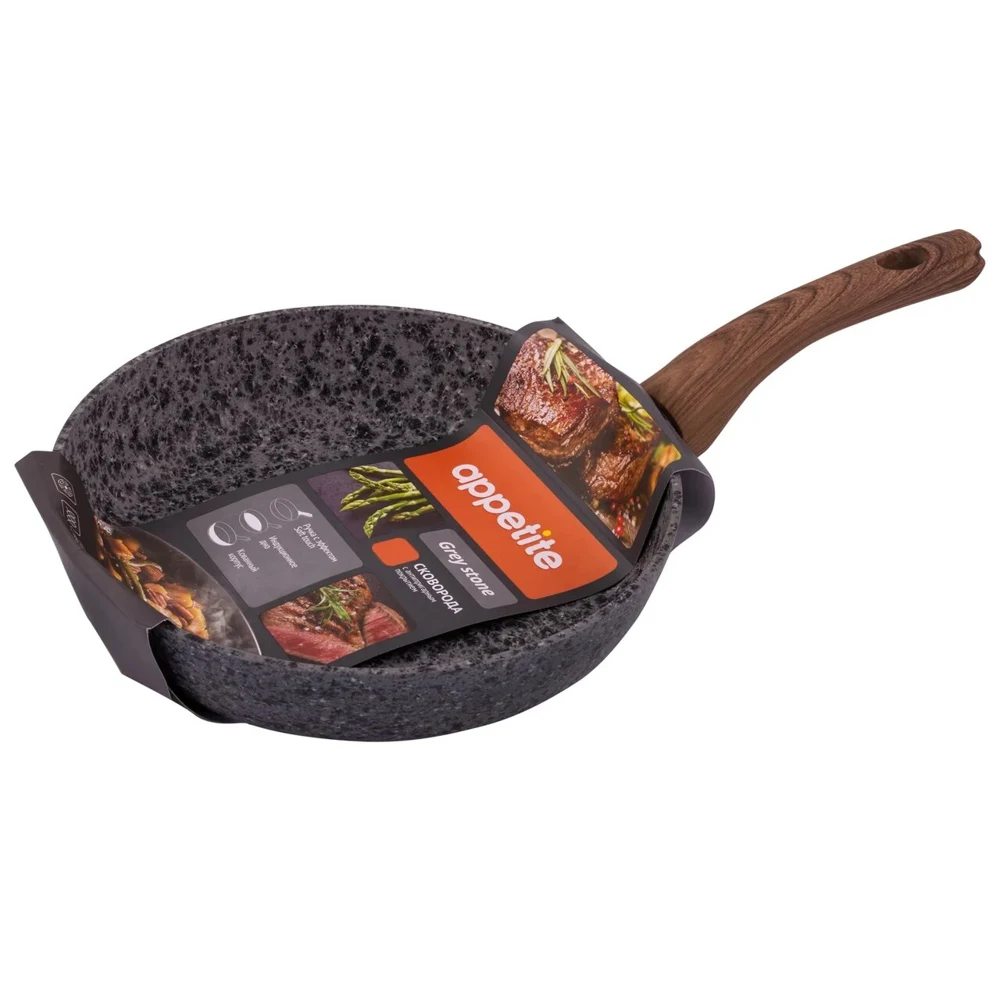 Изготовленная из пищевого алюминия, посуда Appetite подойдет для приготовления самых разных блюд- от рагу и подливы до изысканных и воздушных соусов и кремов. Толстое дно и стенки обемпечат равномерный нагрев, а внутреннее антипригарное покрытие позволяет быстро приготовить вкусную и полезную пищу. Изделия отличаются актуальным и эффектным дизайном: внешнее покрытие напоминает структуру мрамора и гранита, а эргономичная ручка декорирована под дерево и обработана силиконовым покрытием для предотвращения скольжения.