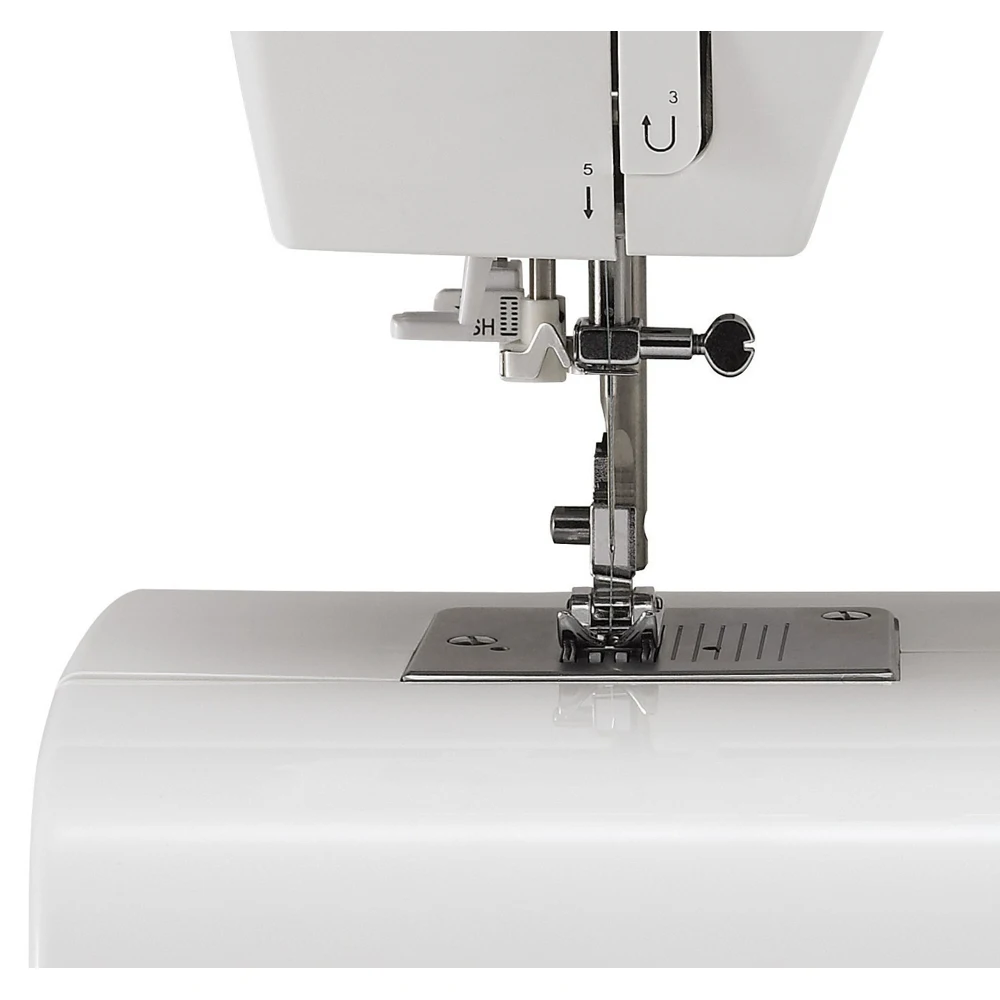 Встроенный заправщик нити облегчит вам трудоемкий процесс. Просто возьмитесь за кончик нити, а нитевдеватель сам протянет ее через ушко иглы. Съемный отсек для аксессуаров дает возможность работать с узкими деталями изделий, например, брючинами и рукавами. В машине предусмотрены как регулировка длины стежка до 4 мм, так и ширины строчки до 5 мм. Настраивайте любой вид шва в зависимости от используемой ткани и ниток.