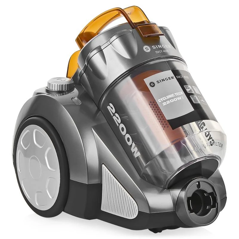 Пылесос Singer SVCT 4020 без мешка для сбора пыли отличается тем, что потребляет значительно меньше электроэнергии благодаря высокоэффективному мотору класса A Eco. Максимальная потребляемая мощность 2000 Вт, что меньше, чем у модели Singer SVCT 4020. Пылесос разработан для деликатной и качественной уборки внутренних помещений, обладает низким уровнем шума в 76 Дб.