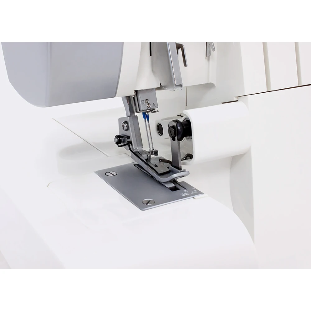 Цветная маркировка заметно облегчает процесс заправки нитей, а возможность изменения различных параматеров, например, ширины обрезки, давления лапки, дифференциального транспортера, позволяет достичь оптимальных результатов.