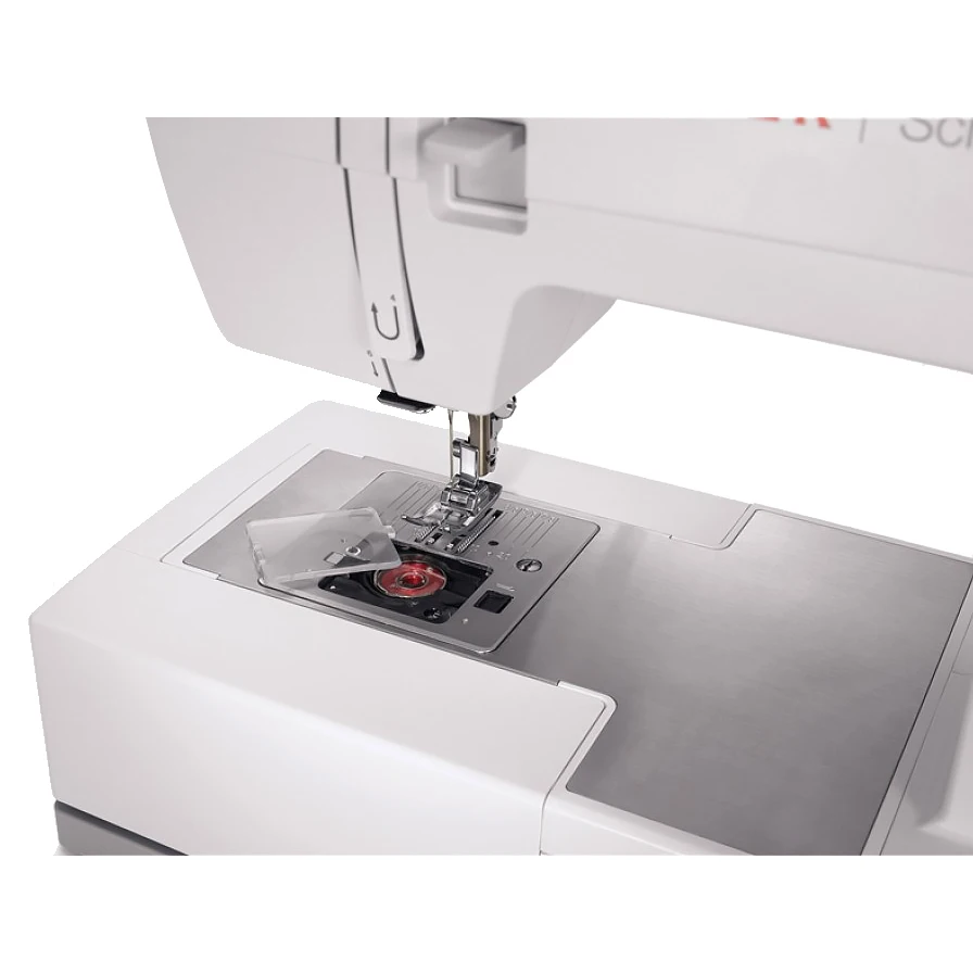 Внутренний каркас швейной машины изготовлен из прочного металла, несет на себе все механизмы, очень хорошо подавляет вибрации и повышает общую прочность машины. Стальные детали в рабочей области помогают лучшему продвижению ткани за счет своей гладкой поверхности.