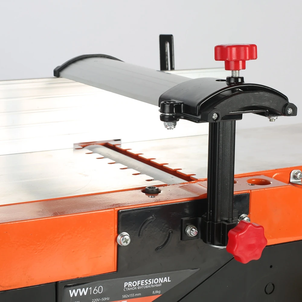Строгально-фуговальный станок применяется в небольших деревообрабатывающих цехах, а также в частных мастерских. В корпусе устройства расположены отверстия для отвода теплого воздуха из системы, что предотвращает перегрев двигателя. Устойчивость станка на поверхности обеспечивает широкое опорное основание.