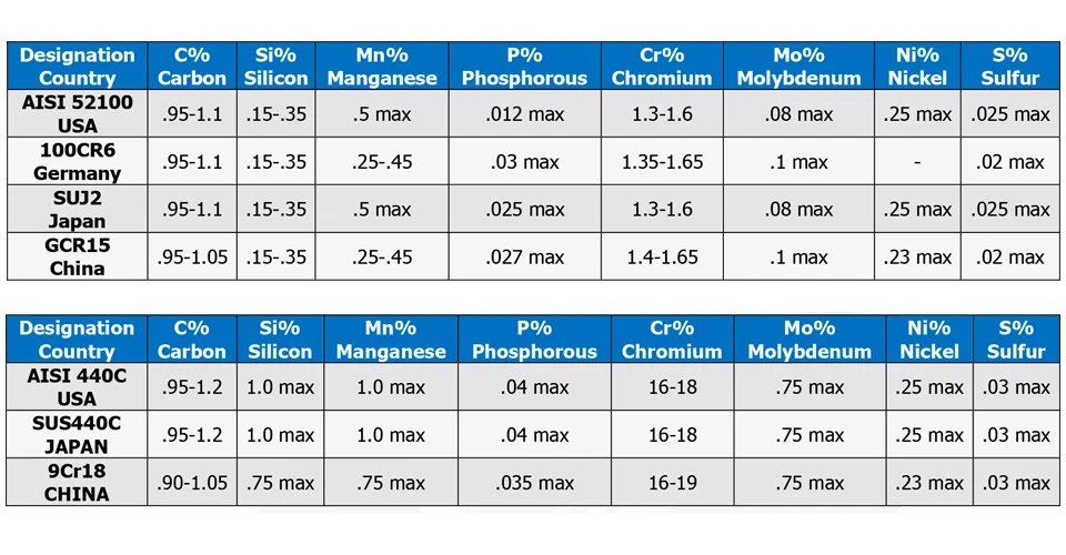 Стандартная твердость поверхности для компонентов подшипника, изготовленных из этого материала, колеблется в диапазоне от 60 до 64 по шкале твердости Rockwell C (Rc).