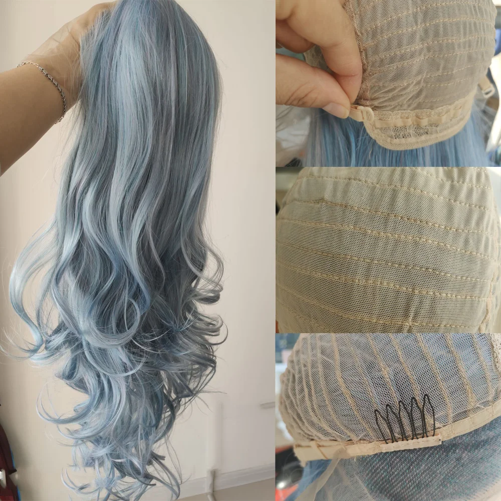 Модный натуральный Смешанная пастель, синий цвет, белый, блонд, длинный, синий, синтетический, кружевной, передний, теплый, мягкий и гладкий кудрявый парик для косплея королевы Товар: 100% новый фронтальный кружевной парик Материал: переднее кружево, высокое качество синтетического и высокотемпературного сопротивления волокна Цвет волос: темно-синий блонд (как на фото) Плотность волос: 150%-180% очень мягкий, очень полный, естественный вид, гладкий и без запаха Длина волос: 24'' О том, где использовать: Вы можете носить его для ежедневного использования или Хэллоуина, концертов, тематических вечеринок, свадьбы, свиданий и любых других особых случаев, что позволит вам чувствовать себя более уверенно. Хранение париков: Лучший способ-это подставка для синтетического парика или голова манекена, также вы можете хранить его в сетке для волос и пластиковом мешке с замком на молнии. (Обратите внимание, что парики должны быть помещены в прохладное сухое пространство)