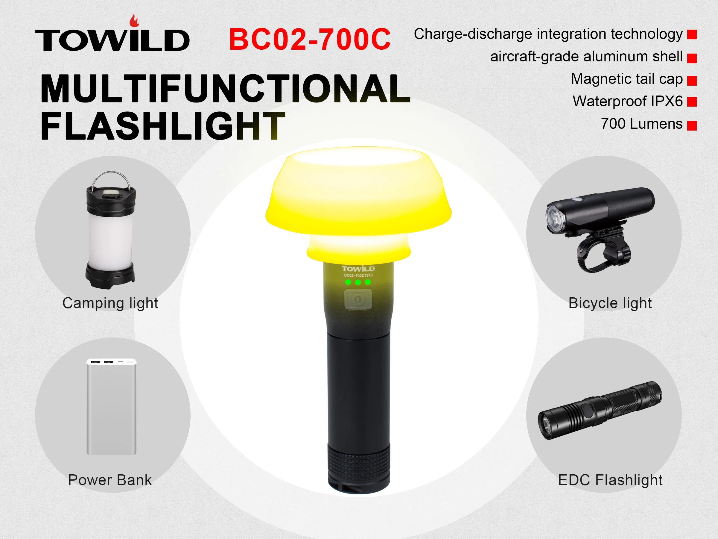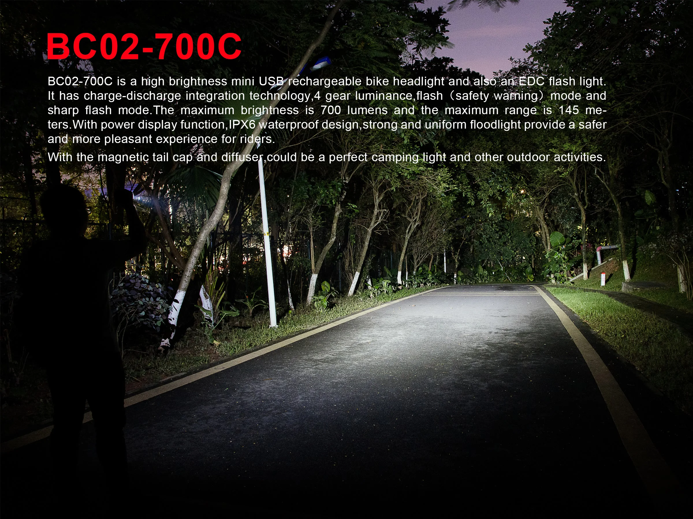 Велосипедный светильник BC02-700C Бандаж для кронштейна Ручной ремешок Разъём зарядного устройства Usb-кабель для зарядки Диффузор Руководство пользователя