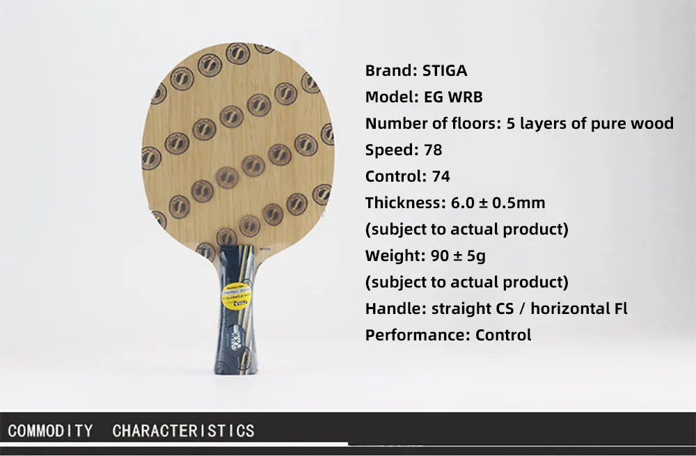Дуга управления Лезвие среднего и дальнего расстояния Более толстый основной материал делает ощущение более твердым Ешьте глубже и легче контролировать Бренд: STIGA Модель: EG WRB Количество полов: 5 слоев чистой древесины Скорость: 78 Контроль: 74 Толщина: 6,0 ± 0,5 мм (при условии фактического продукта) Вес: 90 ± 5g (в зависимости от фактического продукта) Ручка: прямая CS/горизонтальная Fl Производительность: контроль Технология склеивания лезвий STIGA и технология сушки-это светильник, который хорошо работает в погоне за балансом между скоростью и контролем.