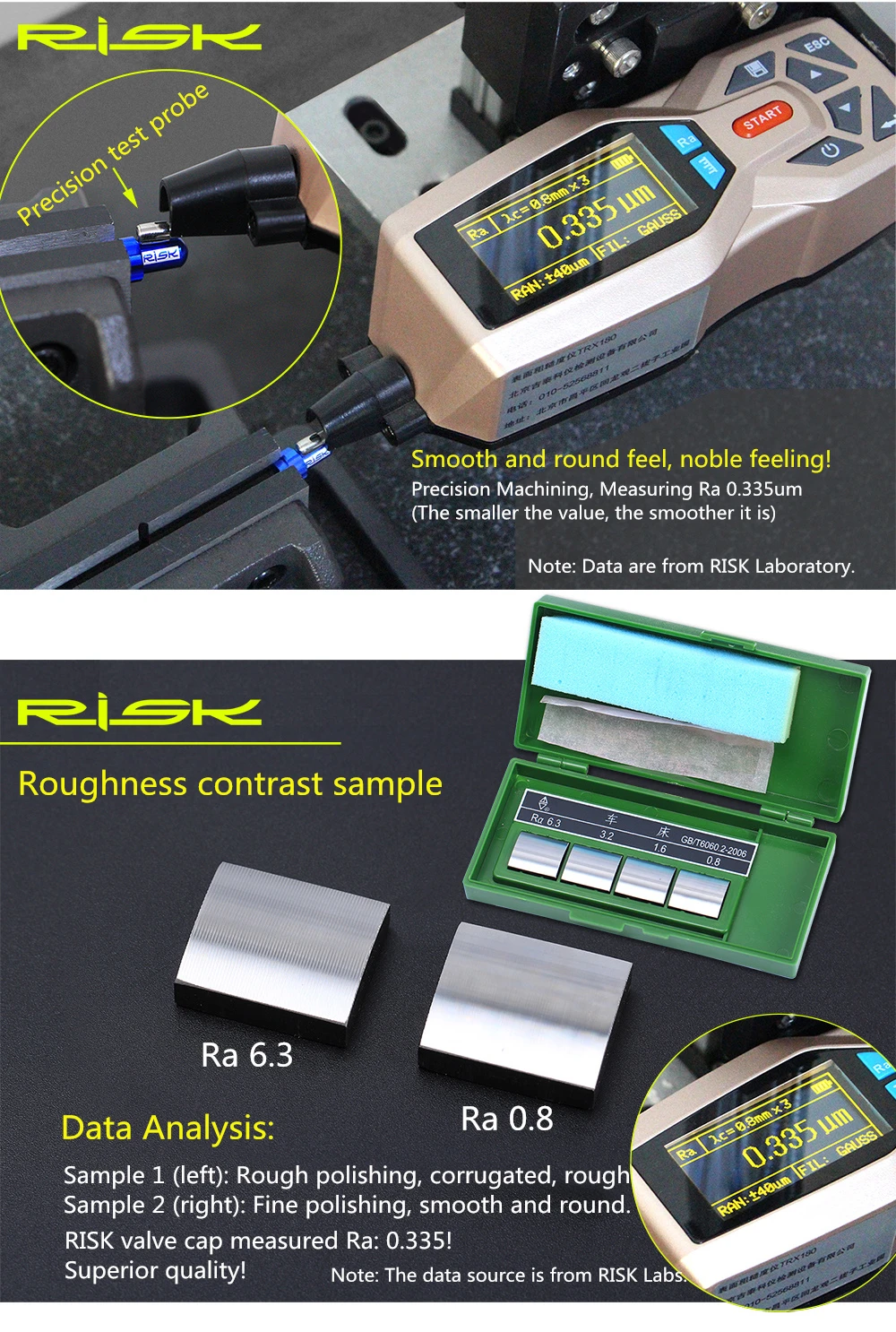 Гладкое и круглое ощущение, благородное чувство! Точность обработки, измерение Ra 0.335um (чем меньше значение, тем более Гладкий) Примечание: Данные получены из лаборатории риска. Шероховатости контрастного образца Анализ данных: Образец 1 (слева): грубая полировка, гофрированная, грубая Образец 2 (справа): тонкая полировка, гладкая и круглая. Измерение крышки клапана риска Ra: 0,335! Превосходное качество! Примечание: источник данных находится в лаборатории риска