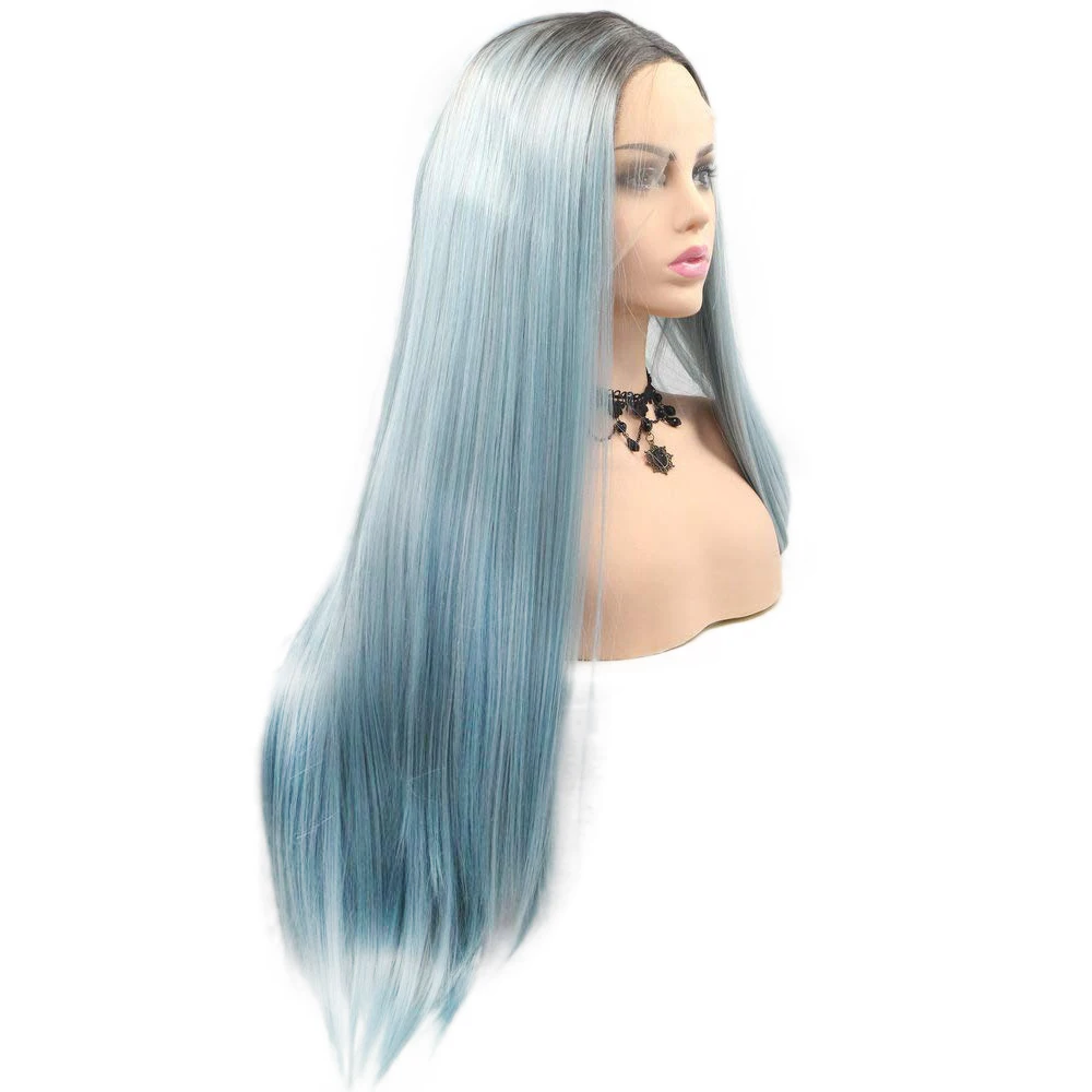 24 "из мягкого материала канекалон, синий синтетический Синтетические волосы на кружеве парики для Для женщин длинные цвет: черный, синий 2 футболка с эффектом деграде (переход от темного к прически Silky Straight, бесклеевой естественный вид парики японский волокна синтетические вечерние праздничные Косплэй перетащите Queen Hair