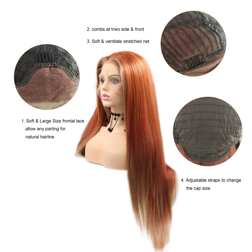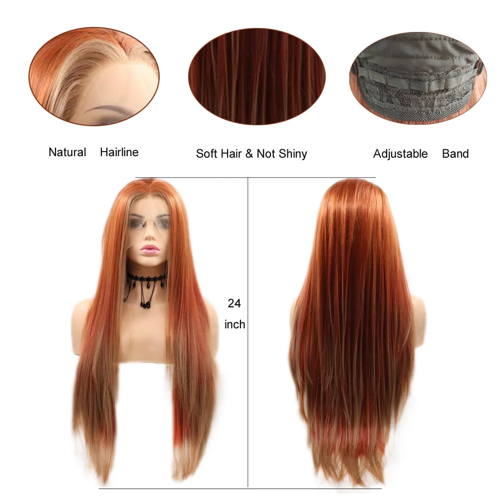Длинные прямые синтетические волосы на кружеве парики из мягкого материала канекалон, волокна парик пианино Цвет прямой желтый Выделите оранжевый синтетические парики фронта шнурка новый Цвет прическа парики для женщин термостойкие волокна волос для косплея