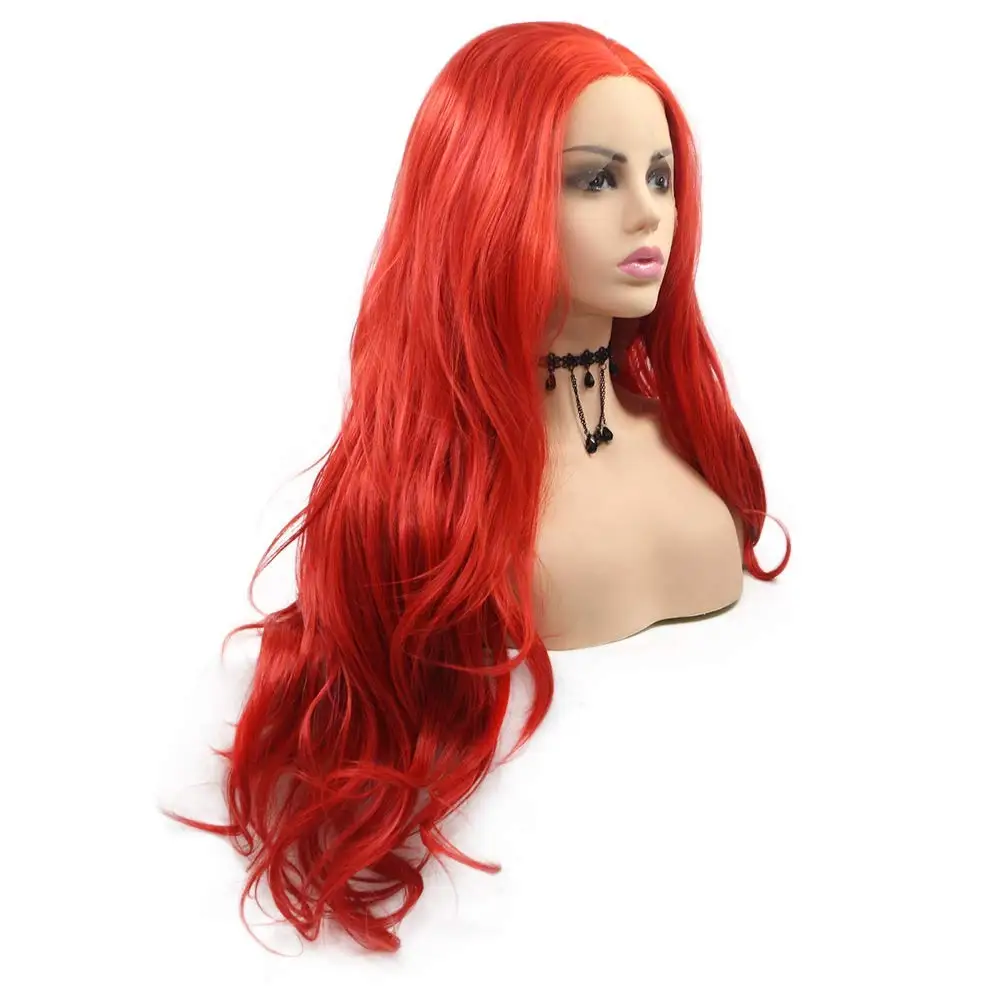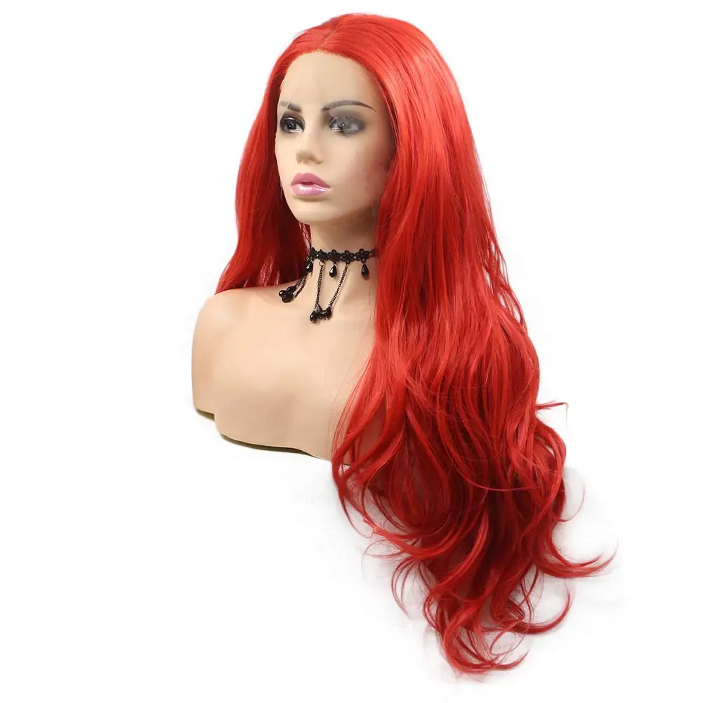 Длинные красные волнистые парики с кружевом спереди для женщин, модные сексуальные натуральные волнистые парики без клея, полузавязанные вручную синтетические парики для свадебной вечеринки, термостойкие волокна, волосы 26 дюймов, фестиваль королевы, лето