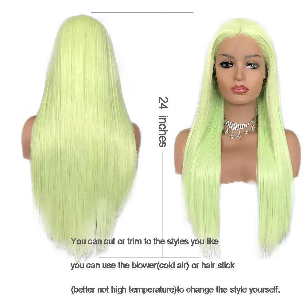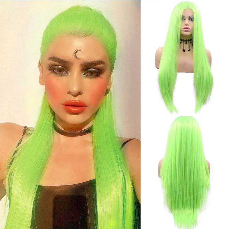 Флуоресцентные зеленые синтетические парики на кружеве для женщин, Зеленый Длинный натуральный прямой парик на шнурках с бесклеевым термостойким волокном, парик для косплея, вечерние, 24 дюйма