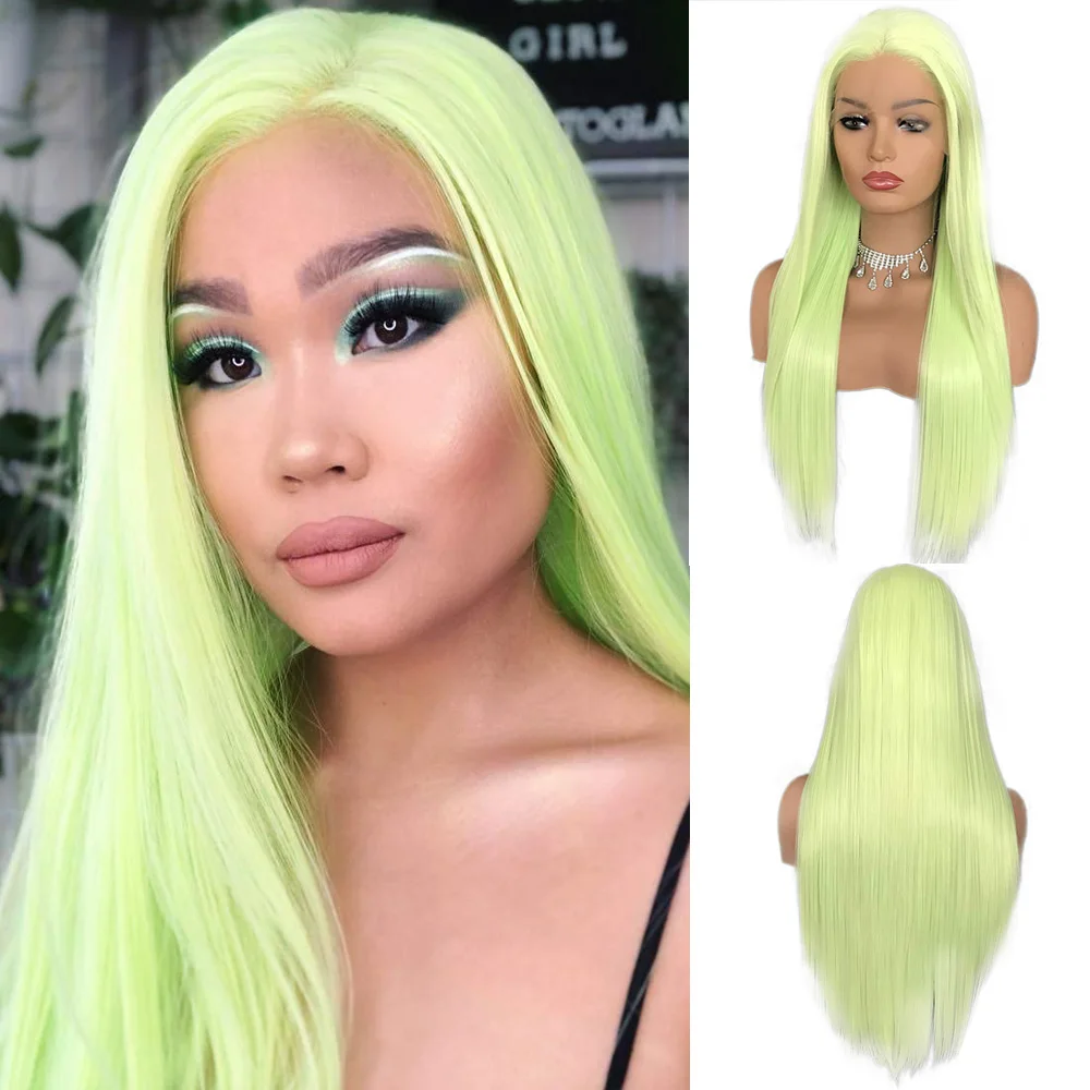 Неоновые зеленые парики пастельно-зеленые синтетические волосы