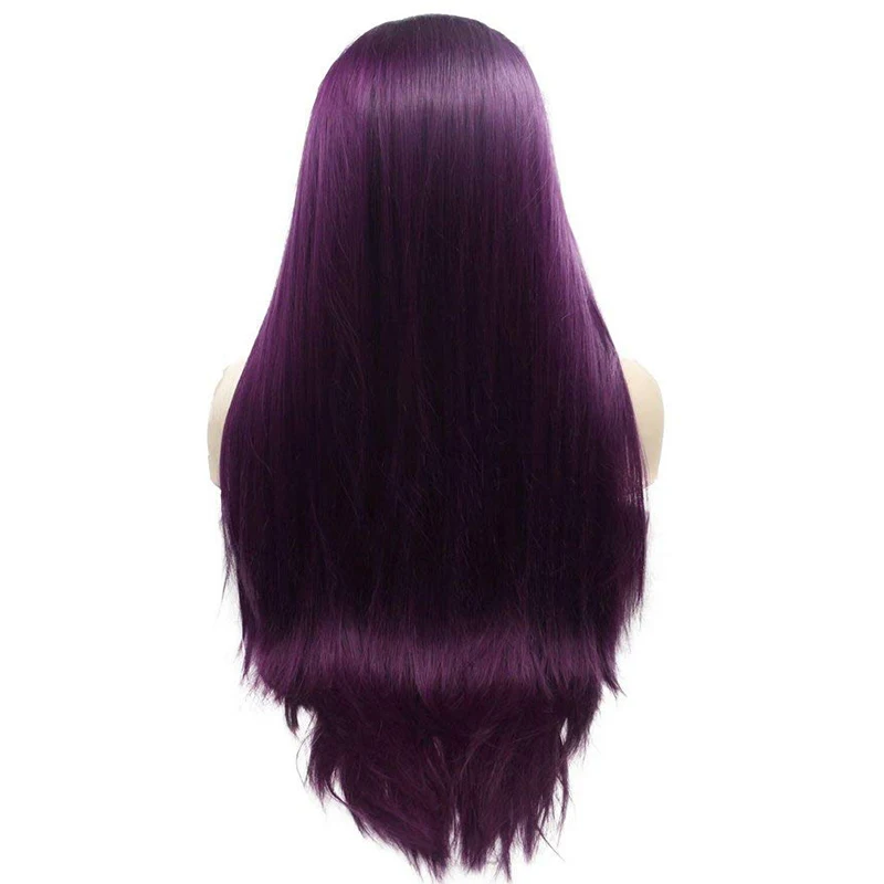 Благородные фиолетовые парики для женщин, Длинный мягкий прямой предварительно выщипанный натуральный парик для волос, термобезопасный синтетический парик для фронта, 150% плотность, бесклеевая мода, сменный парик для волос, Darg Queen, косплей, повседневная одежда 26"