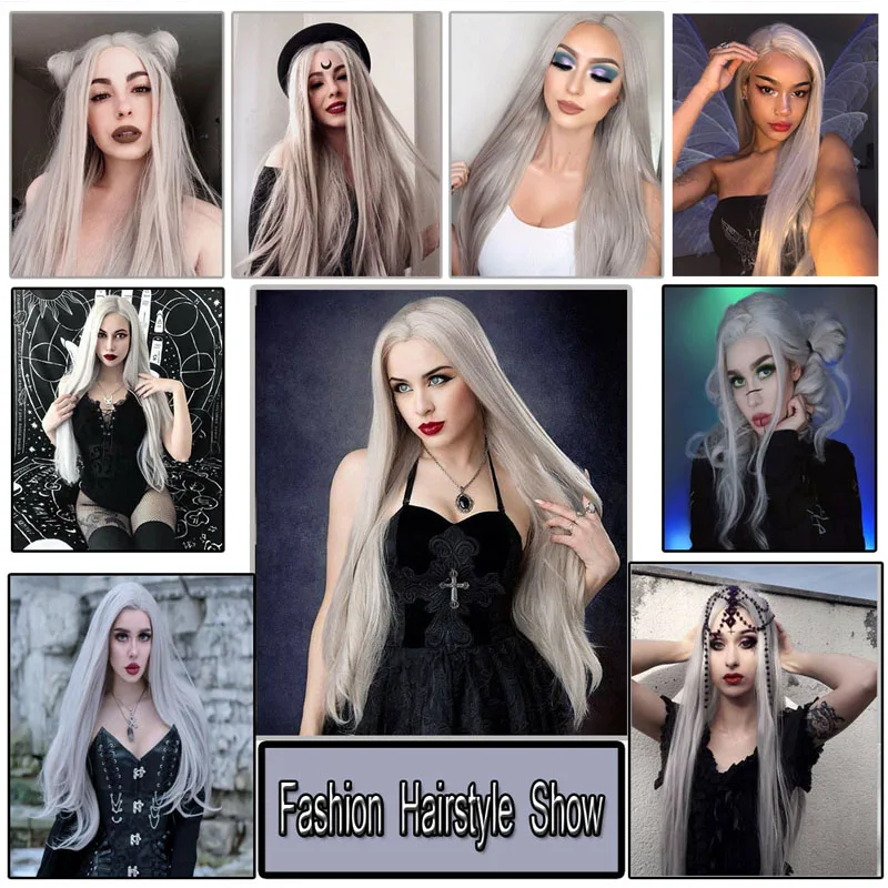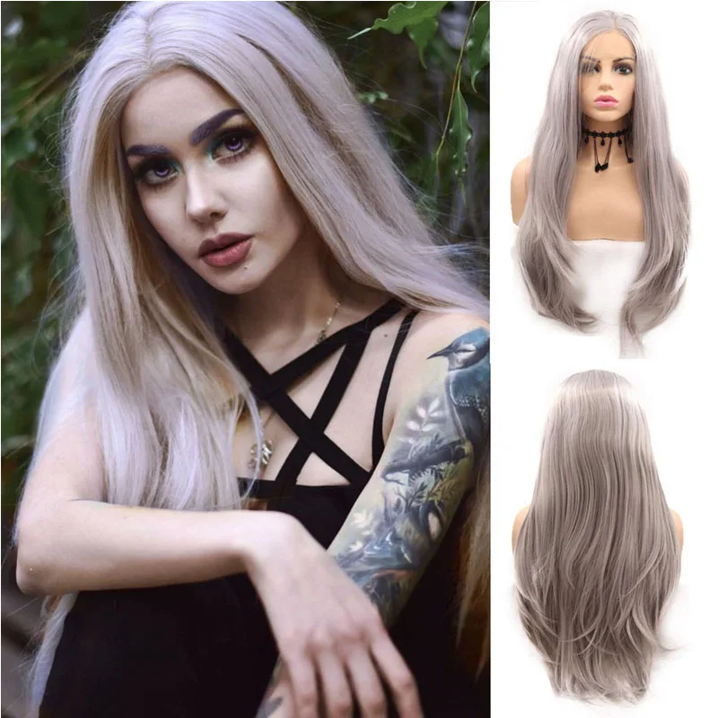 Длинные шелковистые прямые синтетические кружевные передние парики для женщин серые кружевные передние Натуральные Прямые мягкие волосы парик натуральные волосы фронтальные кружевные парики