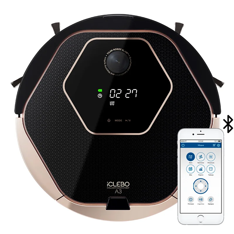 Новый умный робот-пылесос iCLEBO A3 с технологией построения карты помещения, Bluetooth приложением для смартфона, звуковым сопровождением, функцией влажной уборки и непревзойденным корейским качеством и надежностью. Подойдет для уборки на гладких полах в больших помещениях площадью до 220 кв. метров.