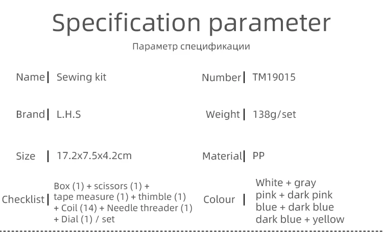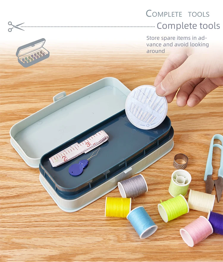 1XStorageBox + 1Xscissors + 1Xtape + 1Xthimble + 1XNeedle threader + 1XDial + 14XCoil