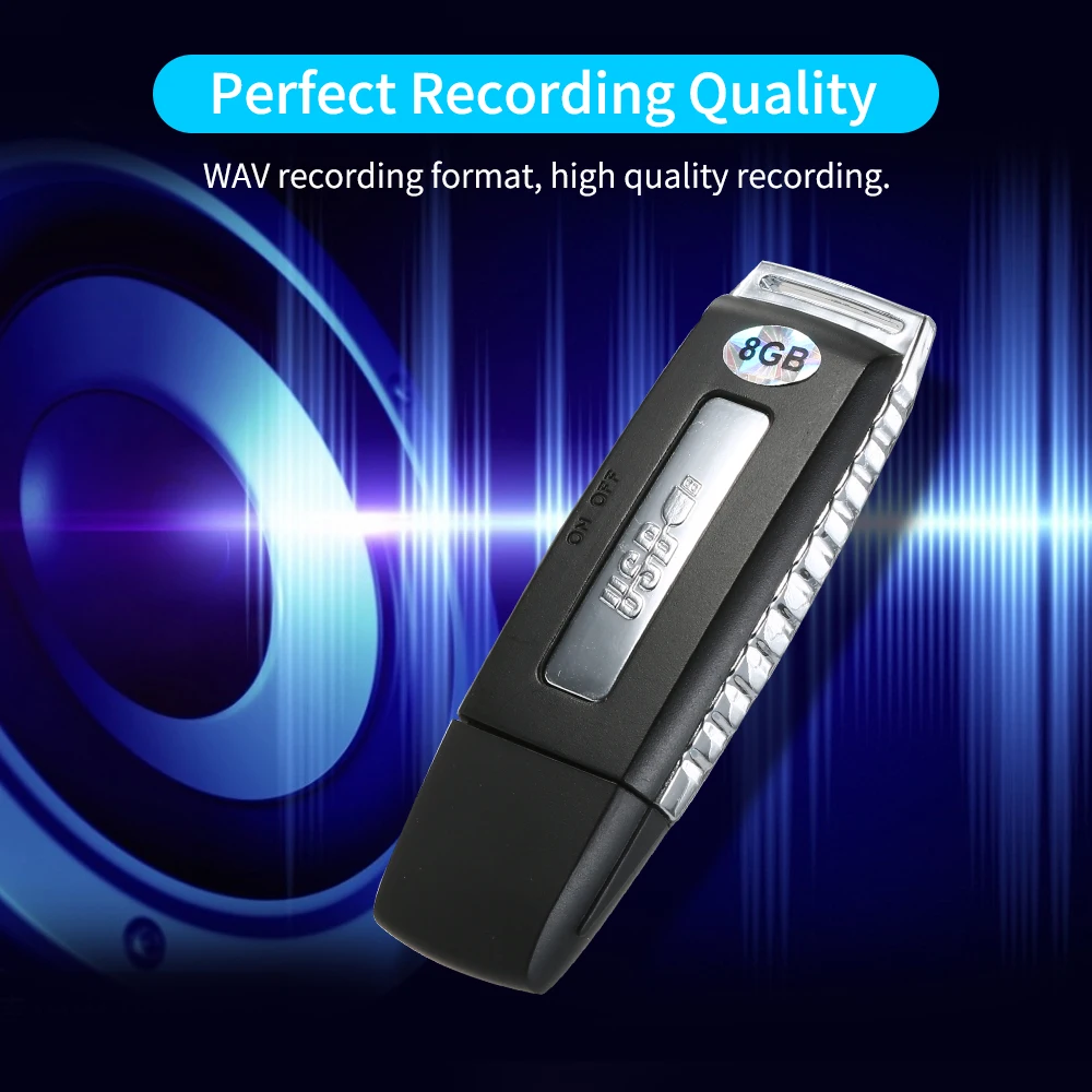 【Одна кнопка записи 】:Включите кнопку питания, чтобы начать запись, после окончания выключите кнопку, а затем она будет сохранена и выключена. WAV формат записи, высокое качество записи.
