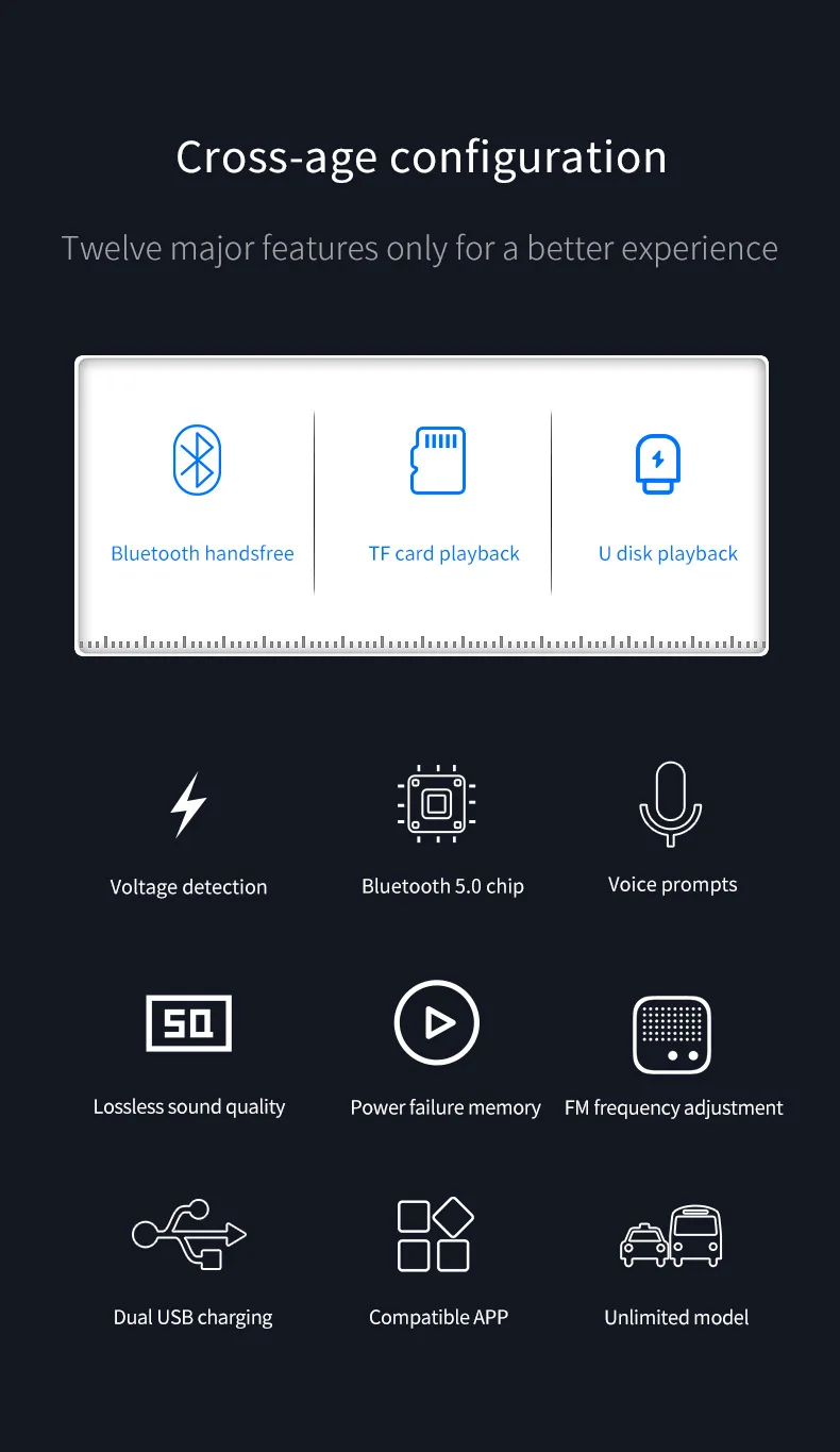 В автомобильном MP3-плеере используется интеллектуальное шумоподавление CVC, обеспечивающее высокое разрешение и высокопроизводительное стерео. Не застревает, плеер может поддерживать музыку без потерь, такую как MP3/FLAC/WMA/APE.